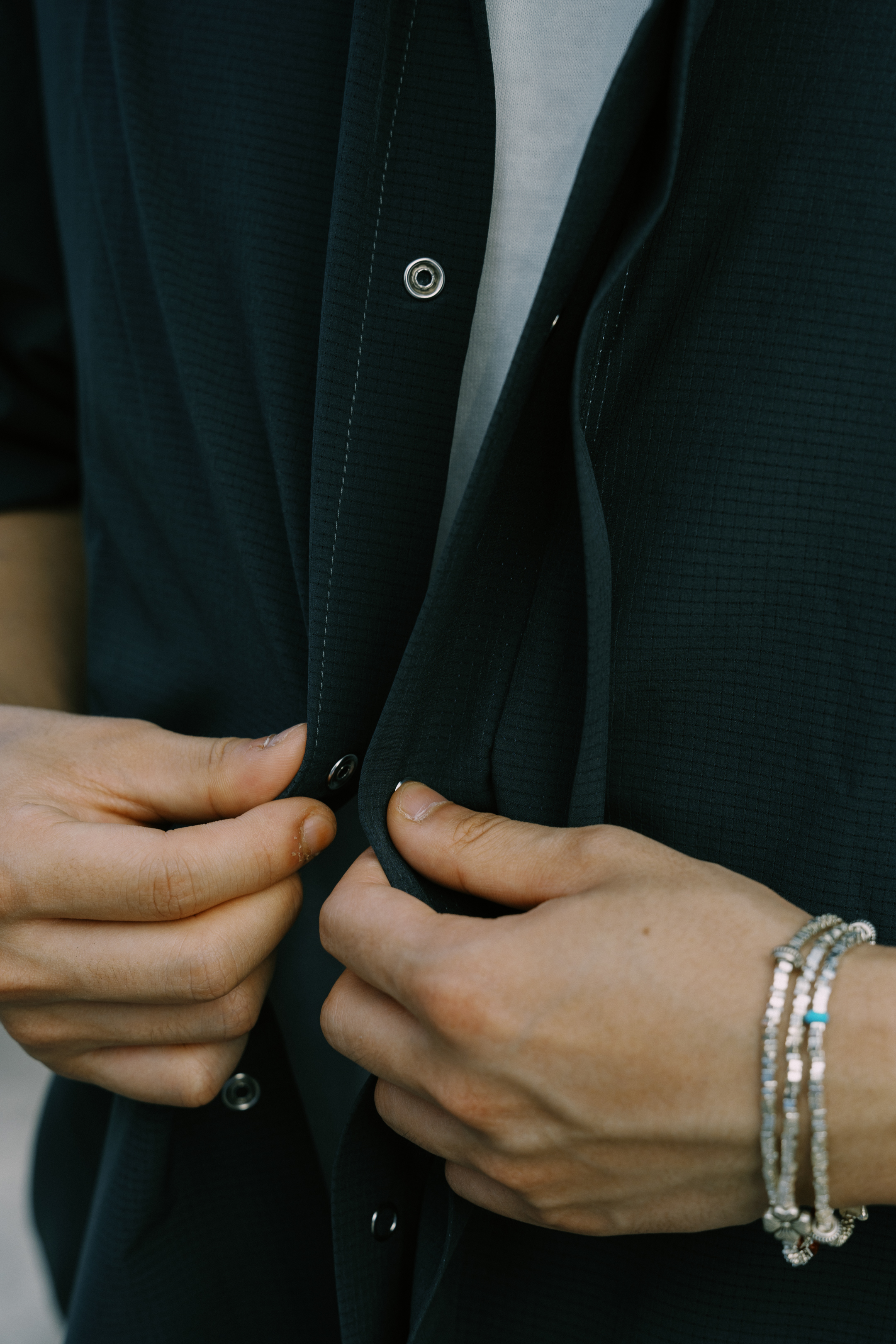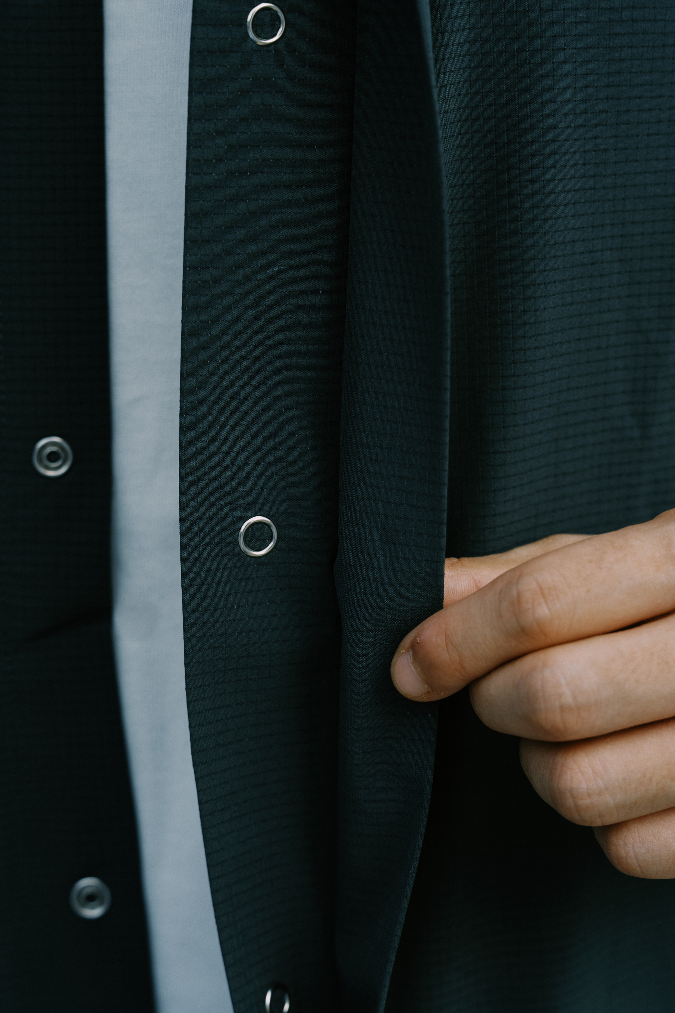 The turtleneck design is equipped with a ring-type snap button door with only the top and bottom two buttons.