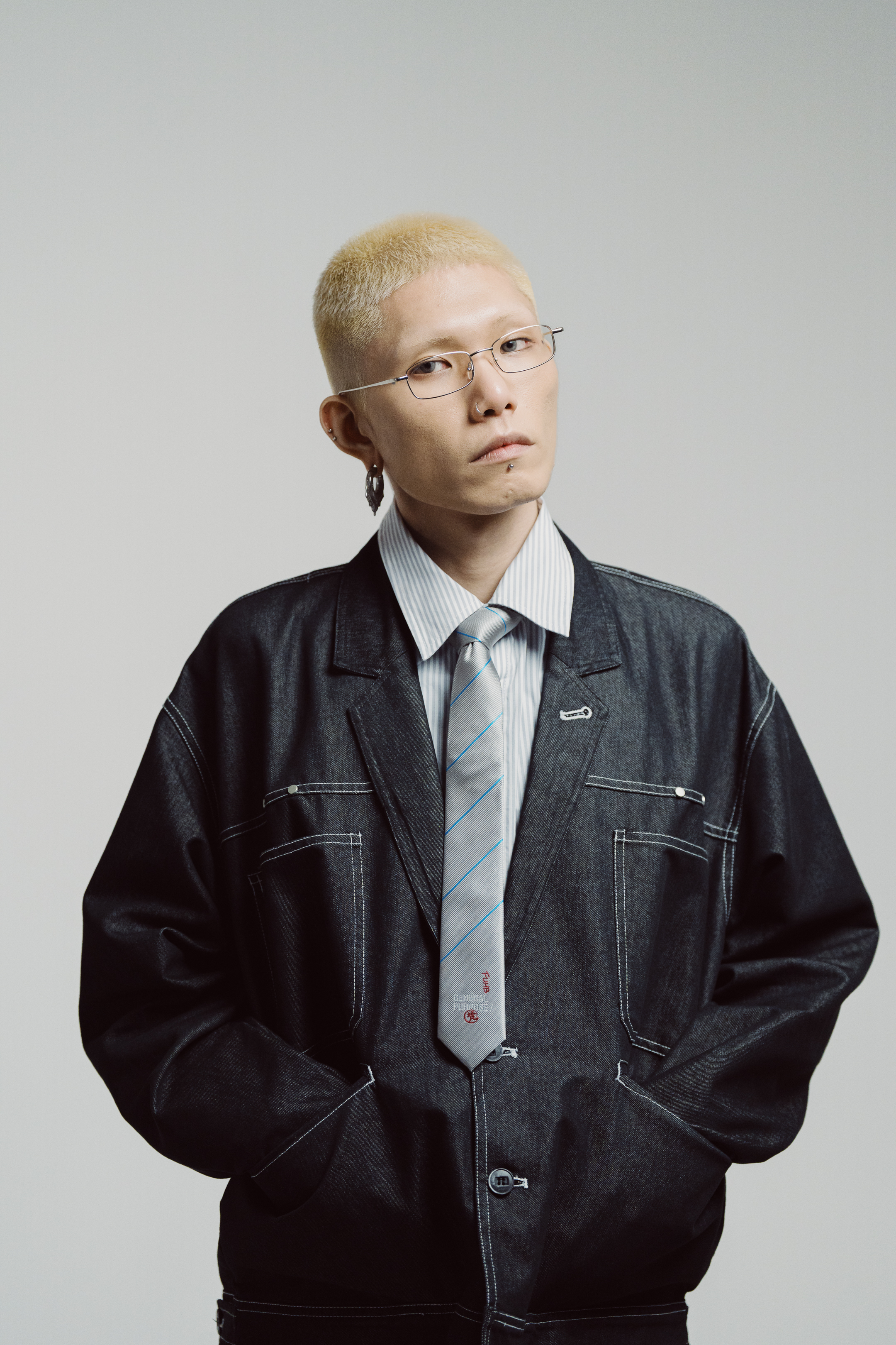 tames denim’s raw character into elegant, angular restraint.