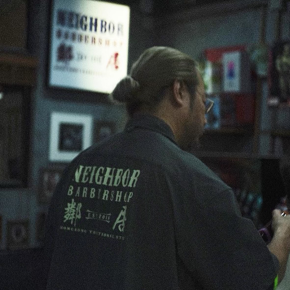 Following Fumble's Oversize Shirt version, there are slip pockets on the left and right to store things, and there are two pockets on the chest for small objects and tools, which are convenient for Barber to place hair clips, combs, and hair planers. The chest is Neighbor Barber The shop logo and Fumble's iconic diamond-shaped logo embroidery totem are the marks, and the complete Neighbor signboard is printed on the back, and a large pocket is added inside the shirt for storage, making work more convenient.