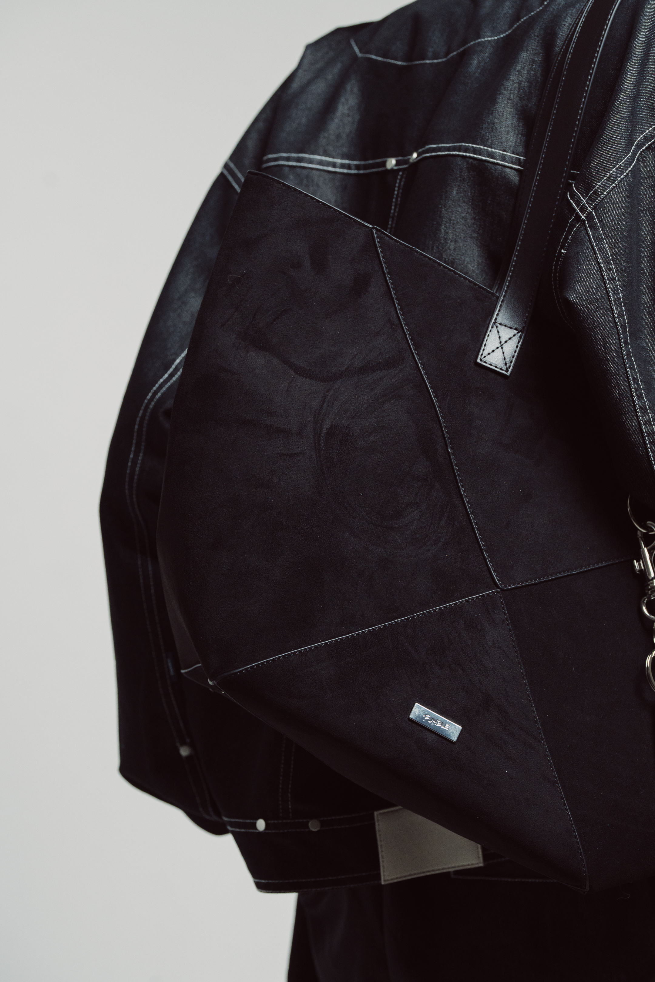 A reverse suede vessel that carries your laptop, your secrets, and midnight ideas,