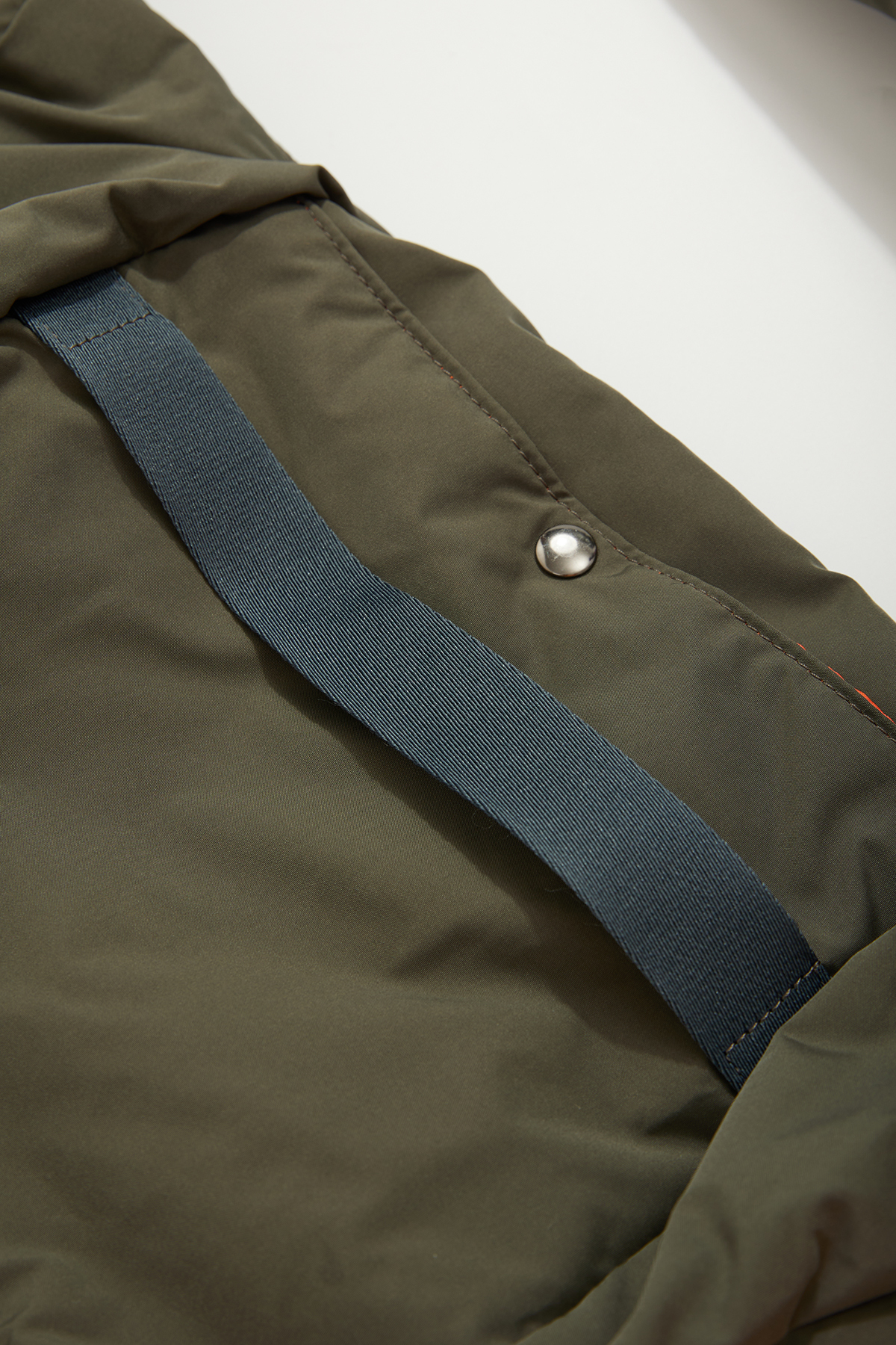 設有4個外袋配置,雙側袋,正蓋口袋及背插袋, 雙側袋以水樽型設計,用上小磁扣位以便打開。 正蓋口袋配有品牌標誌性「2毫鈕」, 背插袋則以啪鈕開合,並設置行李織帶,套進行李提手。