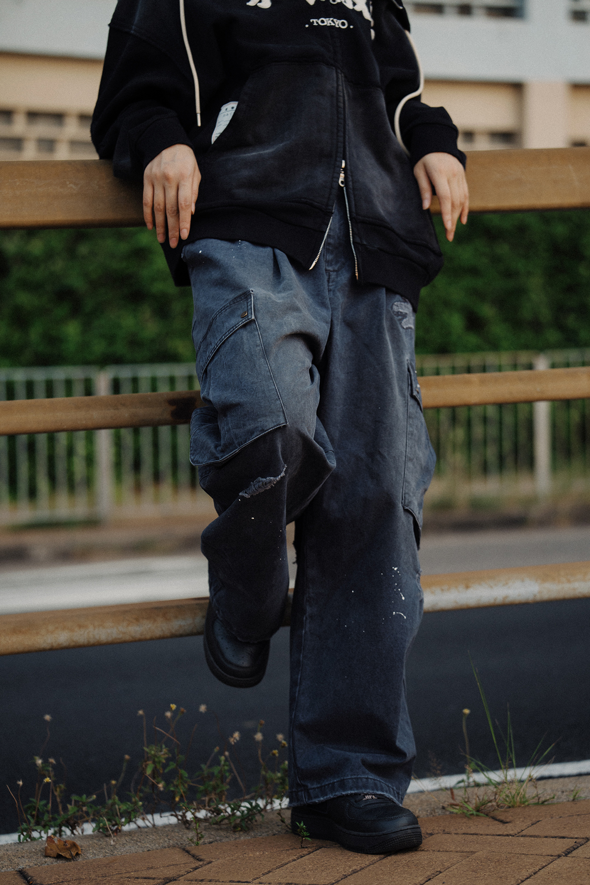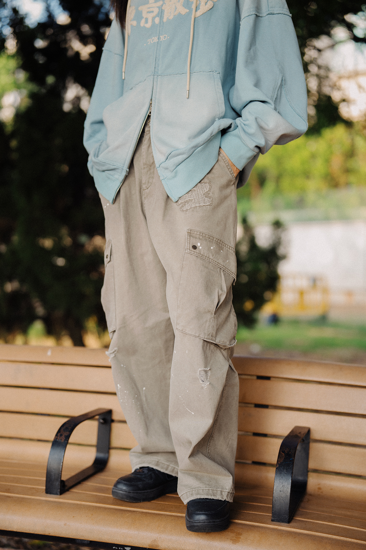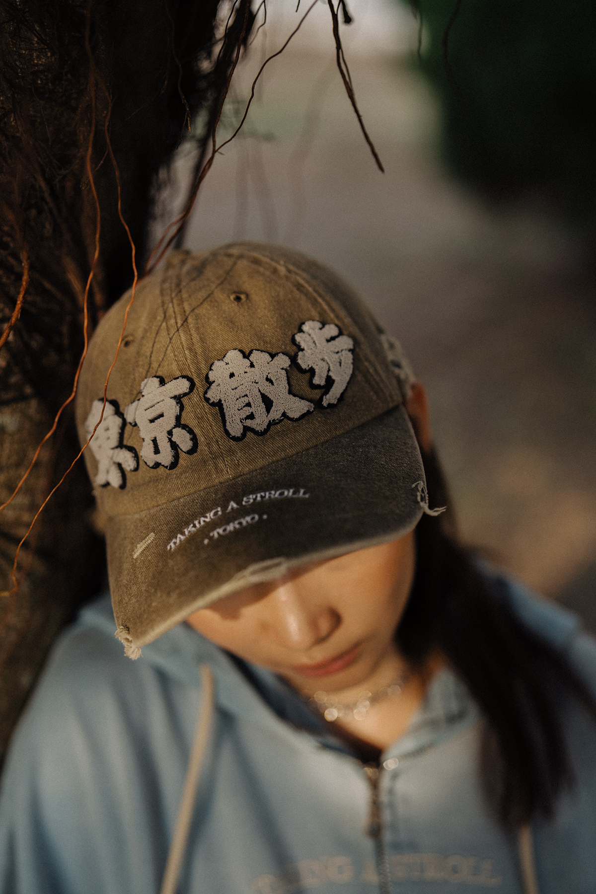 以洗水造舊,破爛,鈕釘代表著經歷,把這些細節鋪成「東京散步」的一磚一瓦。