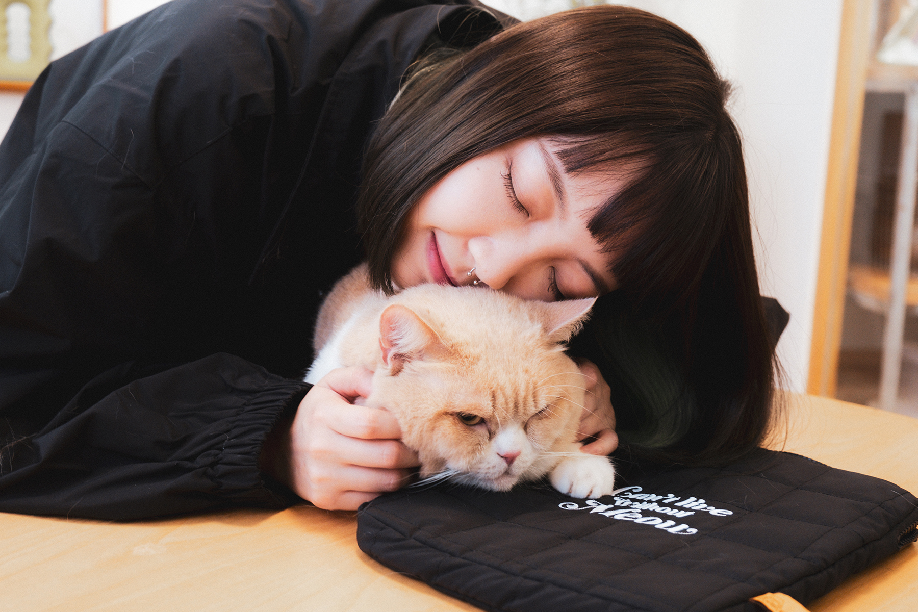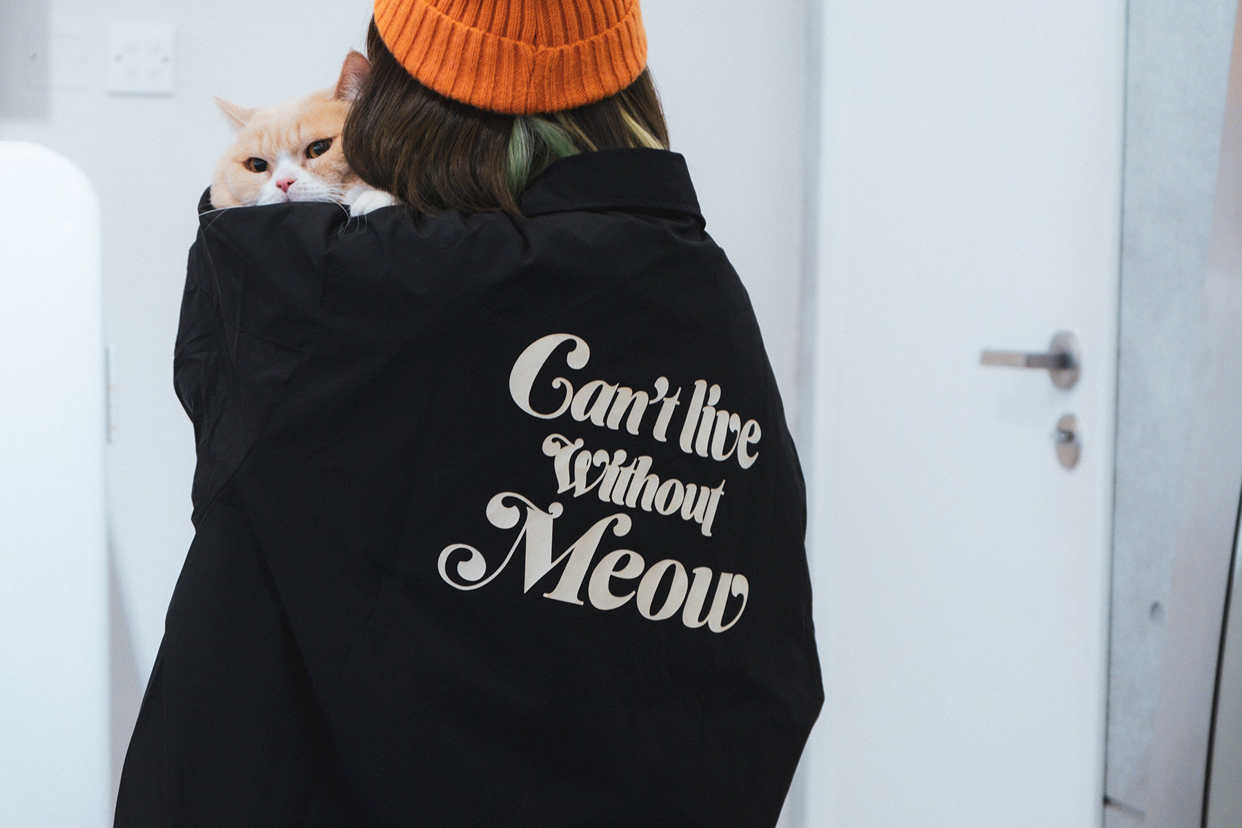 低調黑外層,加上滿版貓貓內裡,背面「Can’t live without Meow」,男女適合,配上寬鬆版型,內裏有特色貓條小袋,養貓奴可以準備充足,隨時討好貓貓。