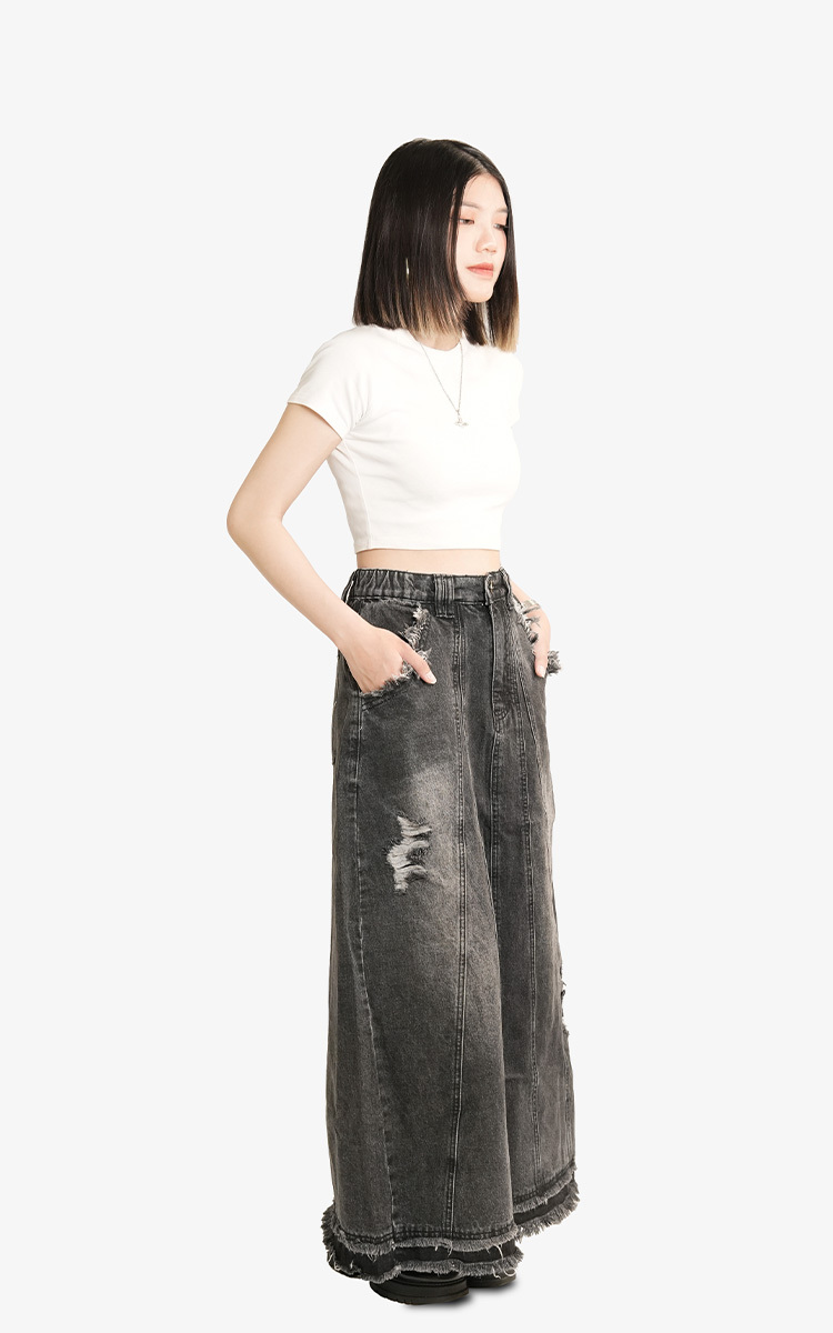 這款磨邊洗水牛仔裙讓每位女生都能展現出更強的個性與女性自主的想法。