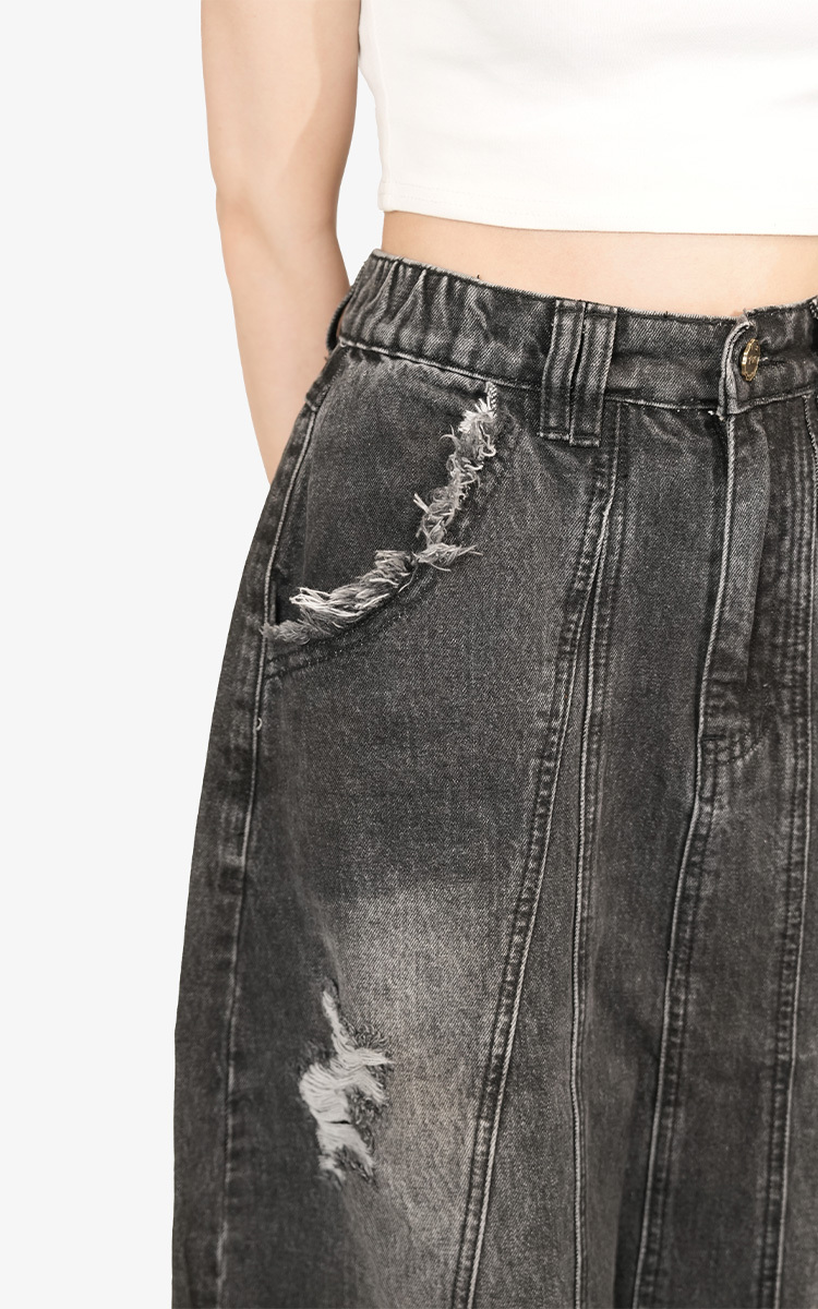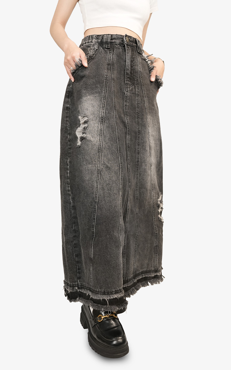 磨邊洗水牛仔裙|黑色|香港原創設計