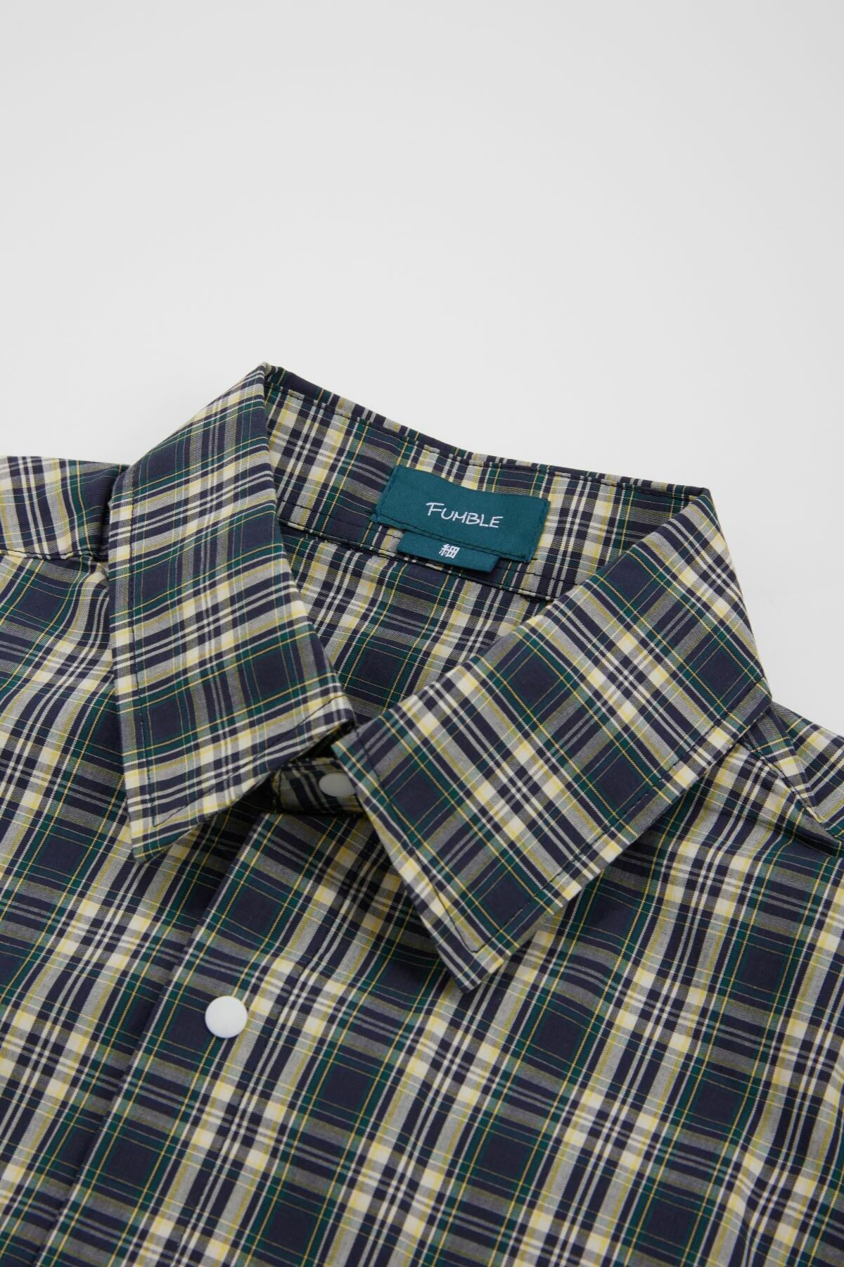 Is it true that every city guy needs a checkered shirt? This "Dual Pocket Yellow and Blue Checkered Shirt" is crafted with 85% polyester and 15% cotton, offering a perfect blend of comfort and breathability. The chest features a "Fàn" embroidered logo that highlights the unique charm of the brand.