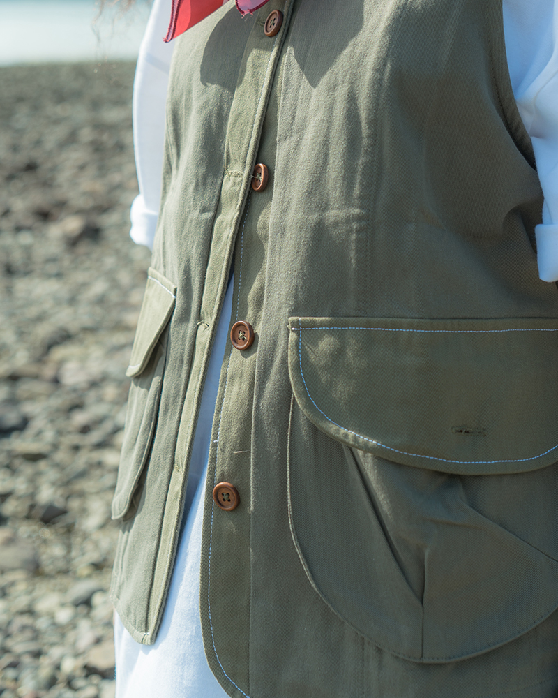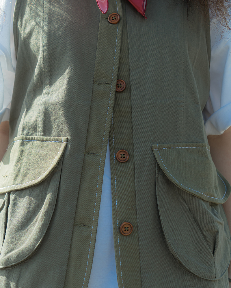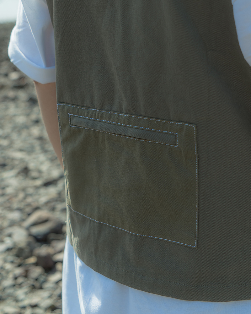 Layering matters in summer outfit! While plain t-shirts are the key items of summer, a well-designed vest help a lot in creating layers on your outfit. We have chosen Twill to put in our creation. At the same time, we have used color-blocking as the main design ideas together with three set of pockets and contrast stitching. Two colorways of choice will be provided.
