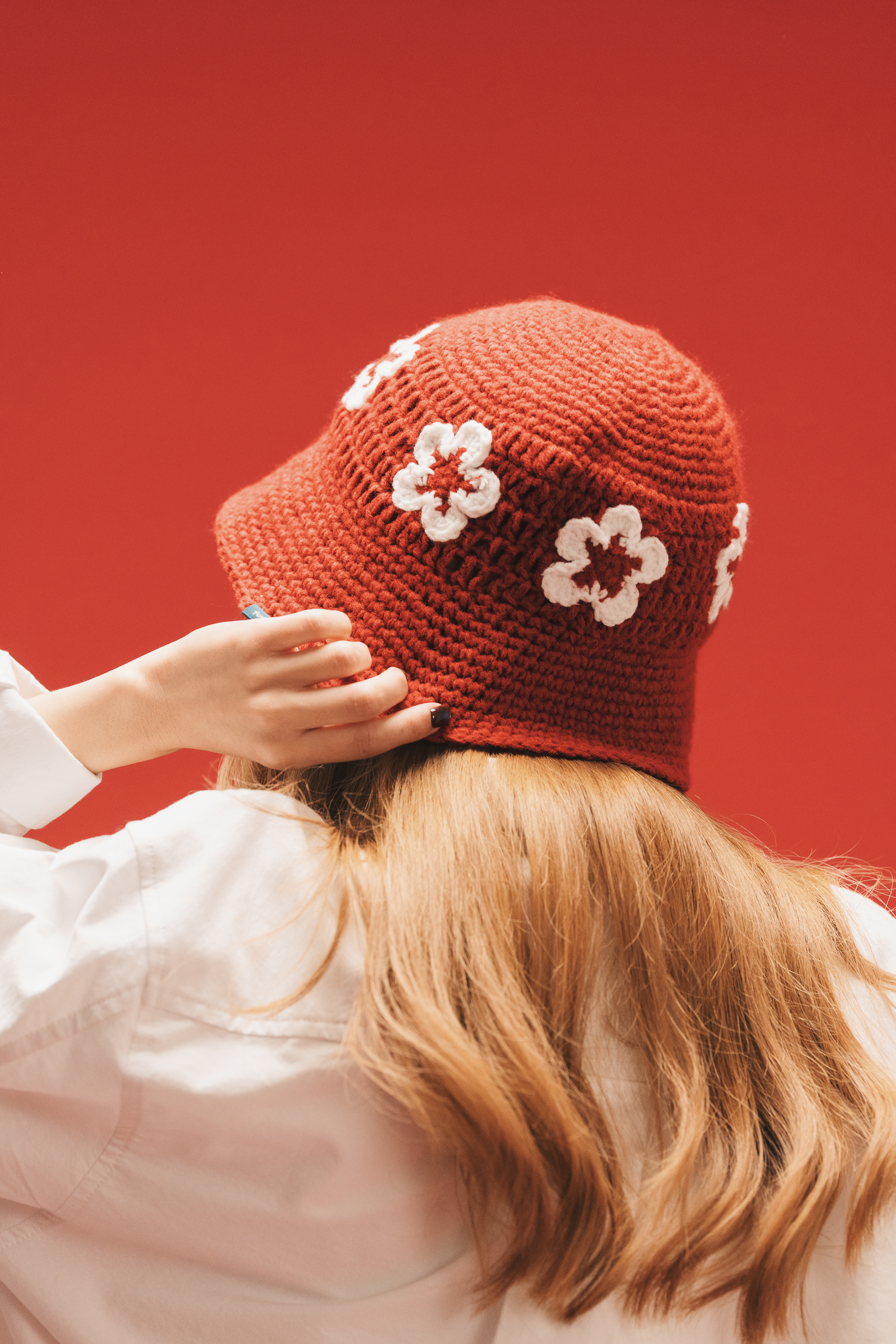 It blooms, withers, and is reborn. This bucket hat, hand-knitted from pure 100% cotton yarn, captures the eternal moment of “blooming.”