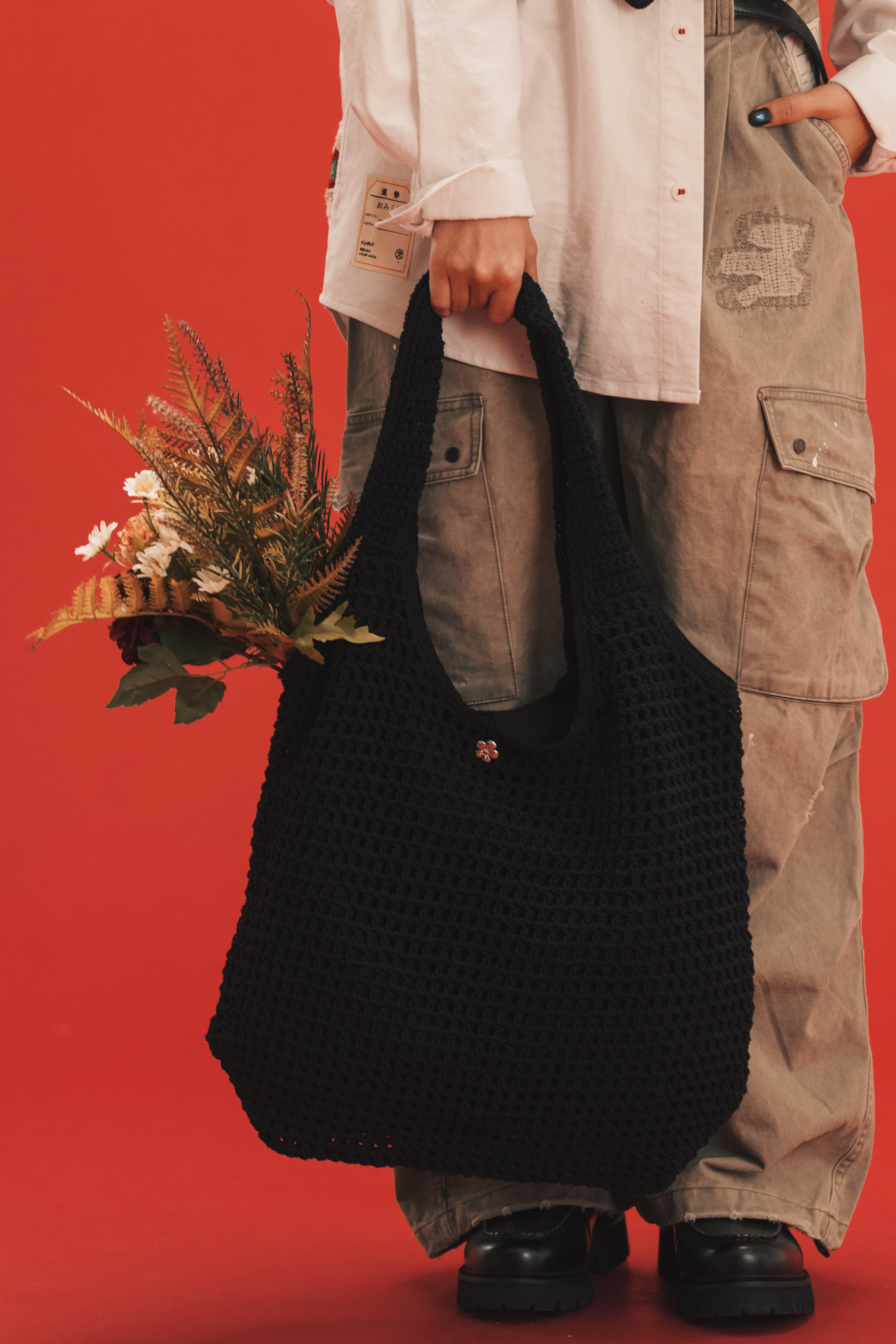The collection-exclusive HANA floral snap button stands as the solemn gateway of this sanctuary.