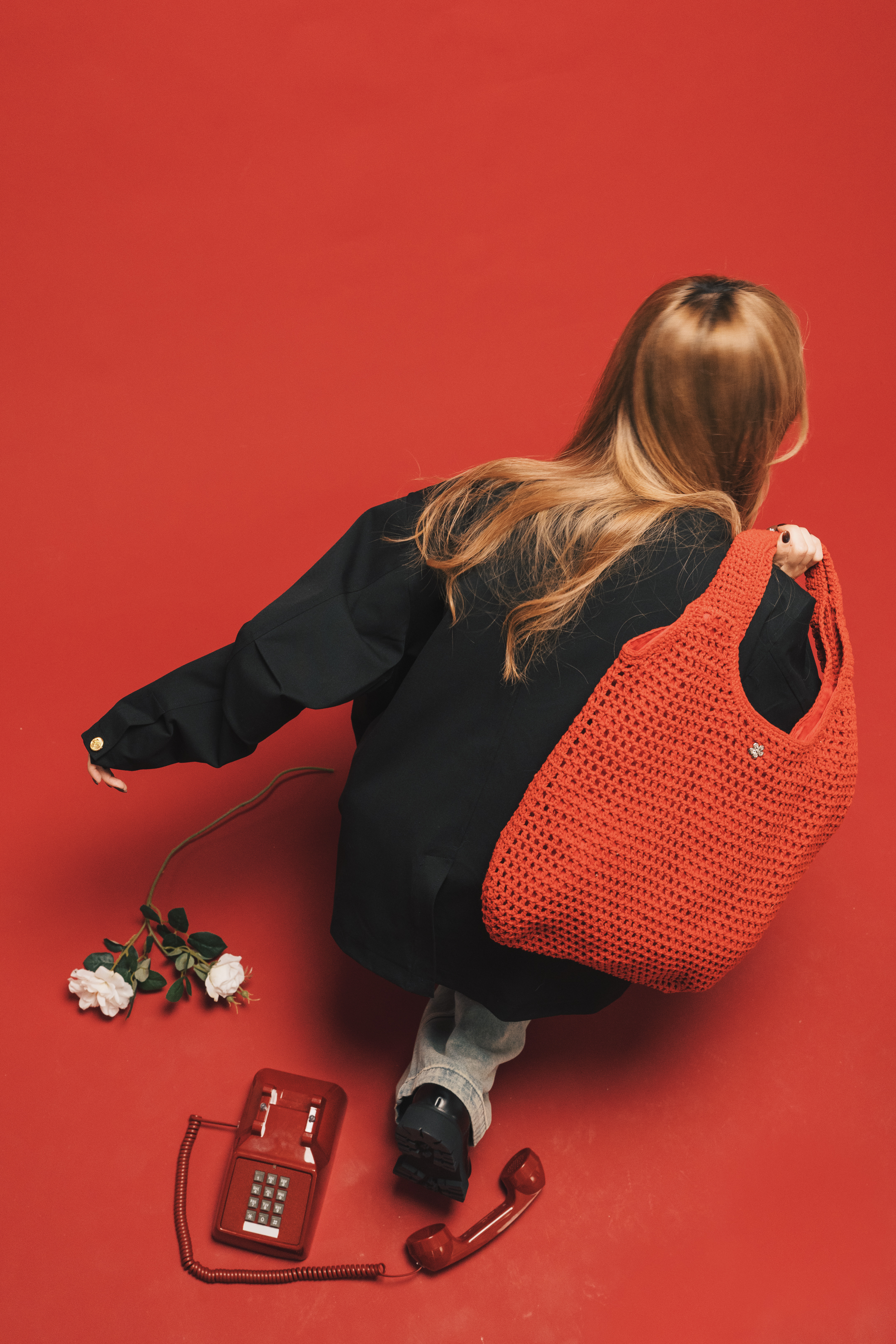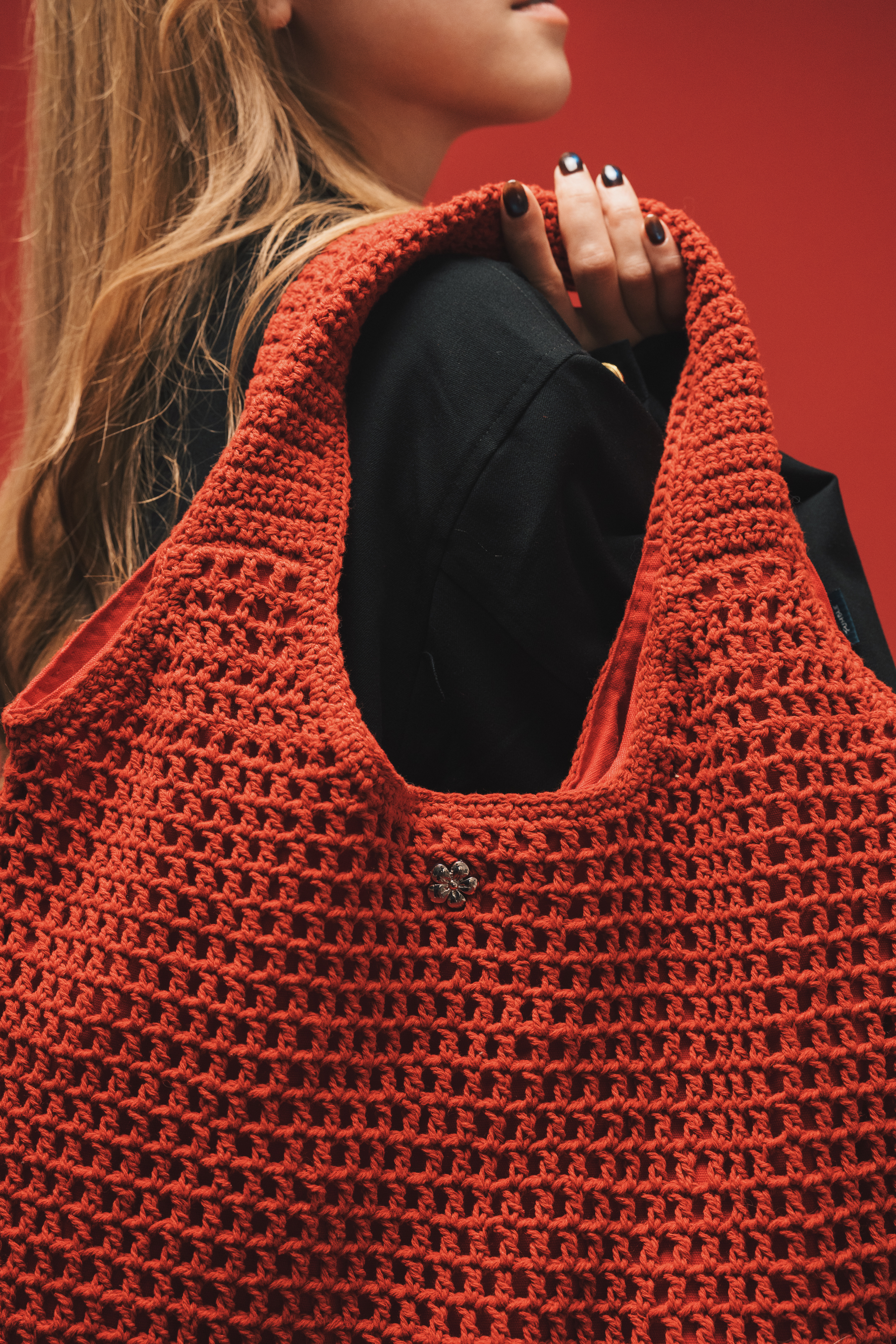 This all-Red woven shoulder bag was not created to dazzle or compete for attention.