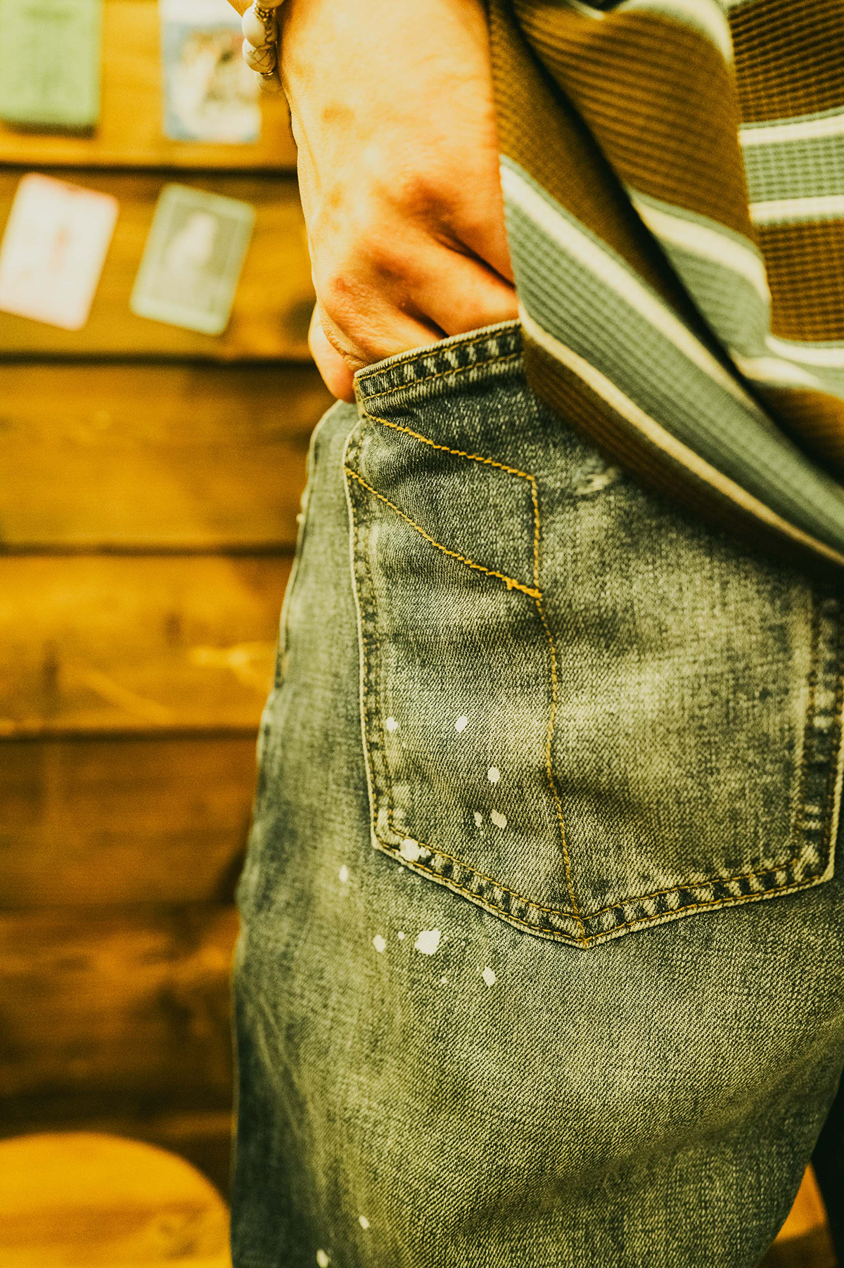 A piece of denim represents a story. Use your experience to replace the traces of denim.