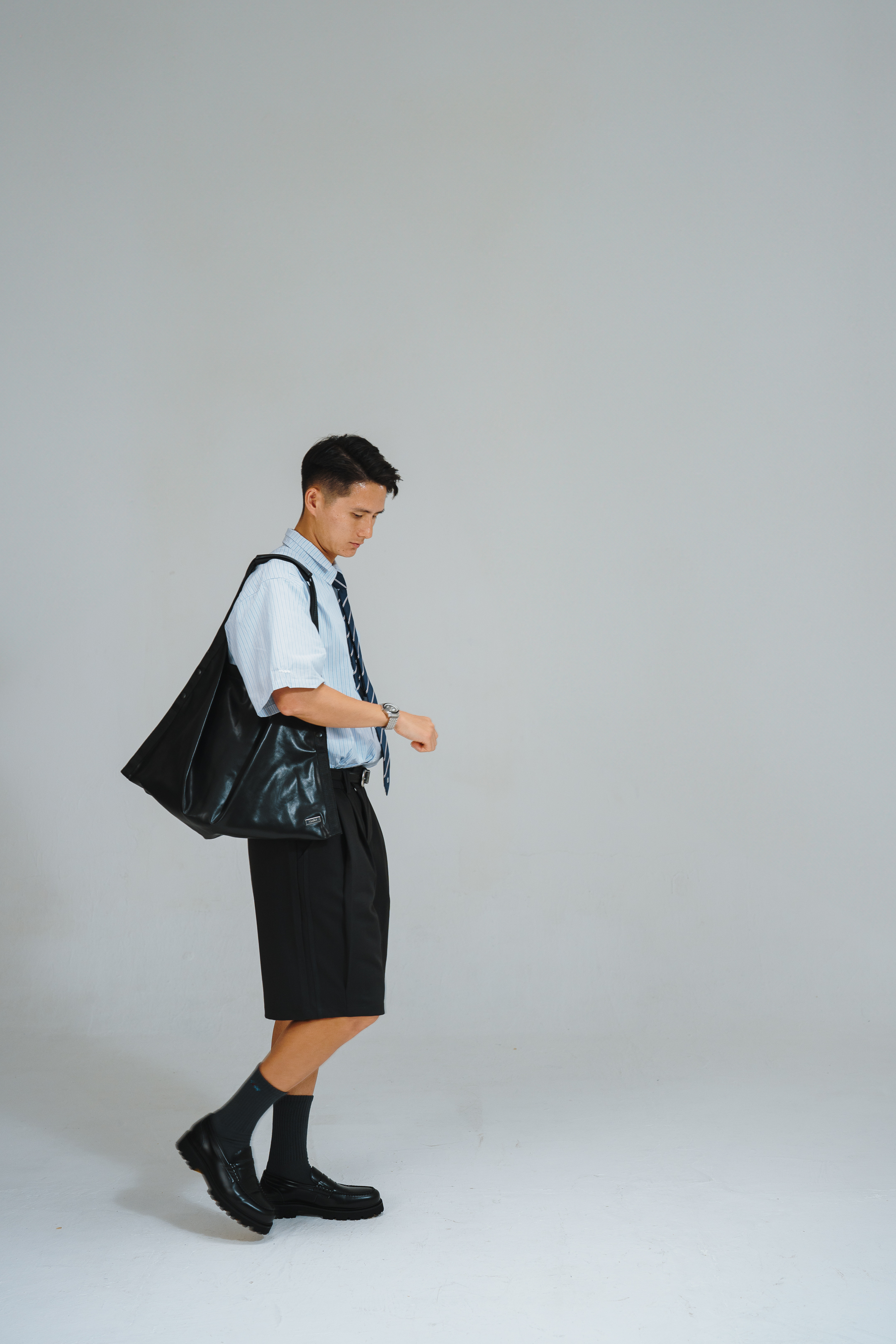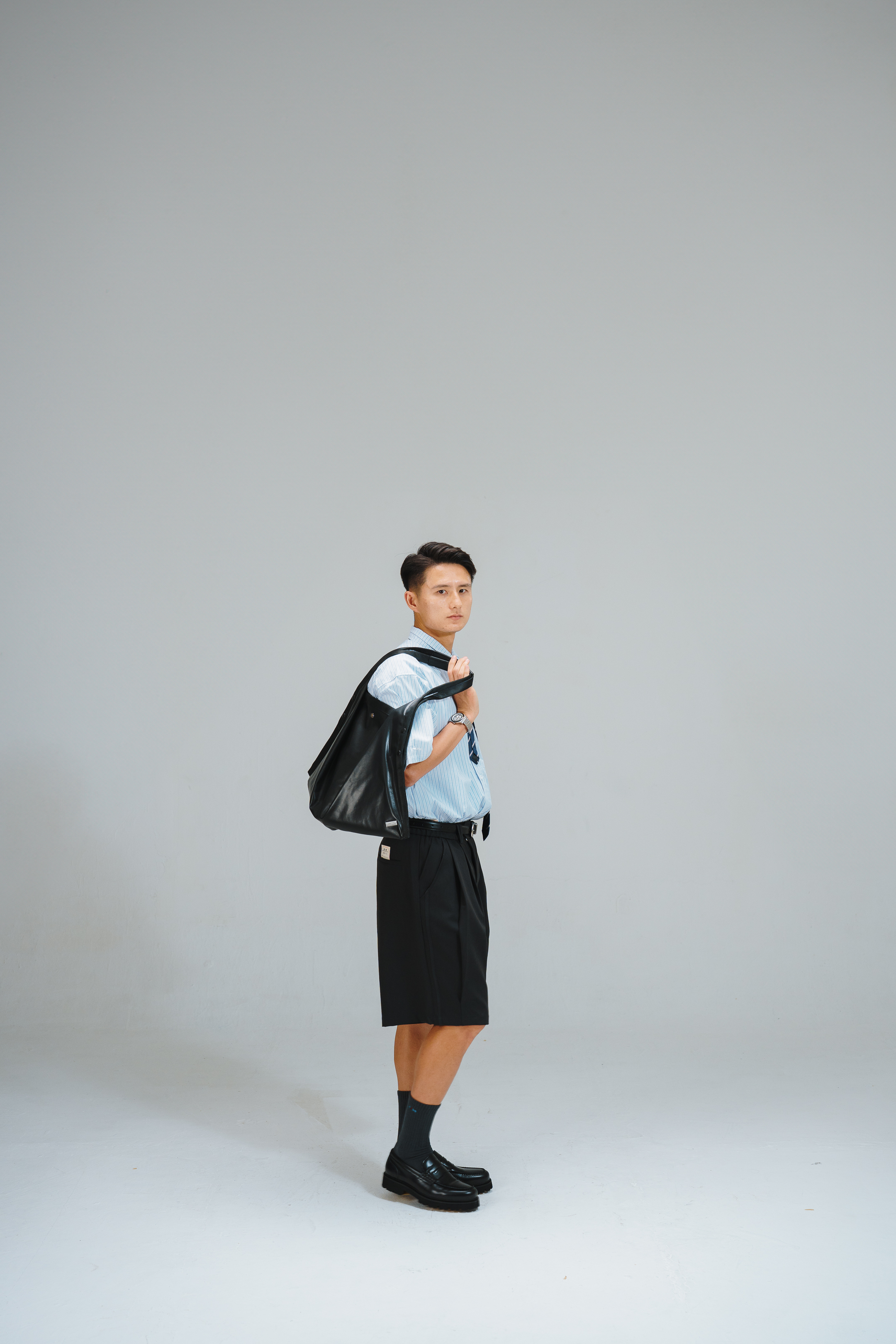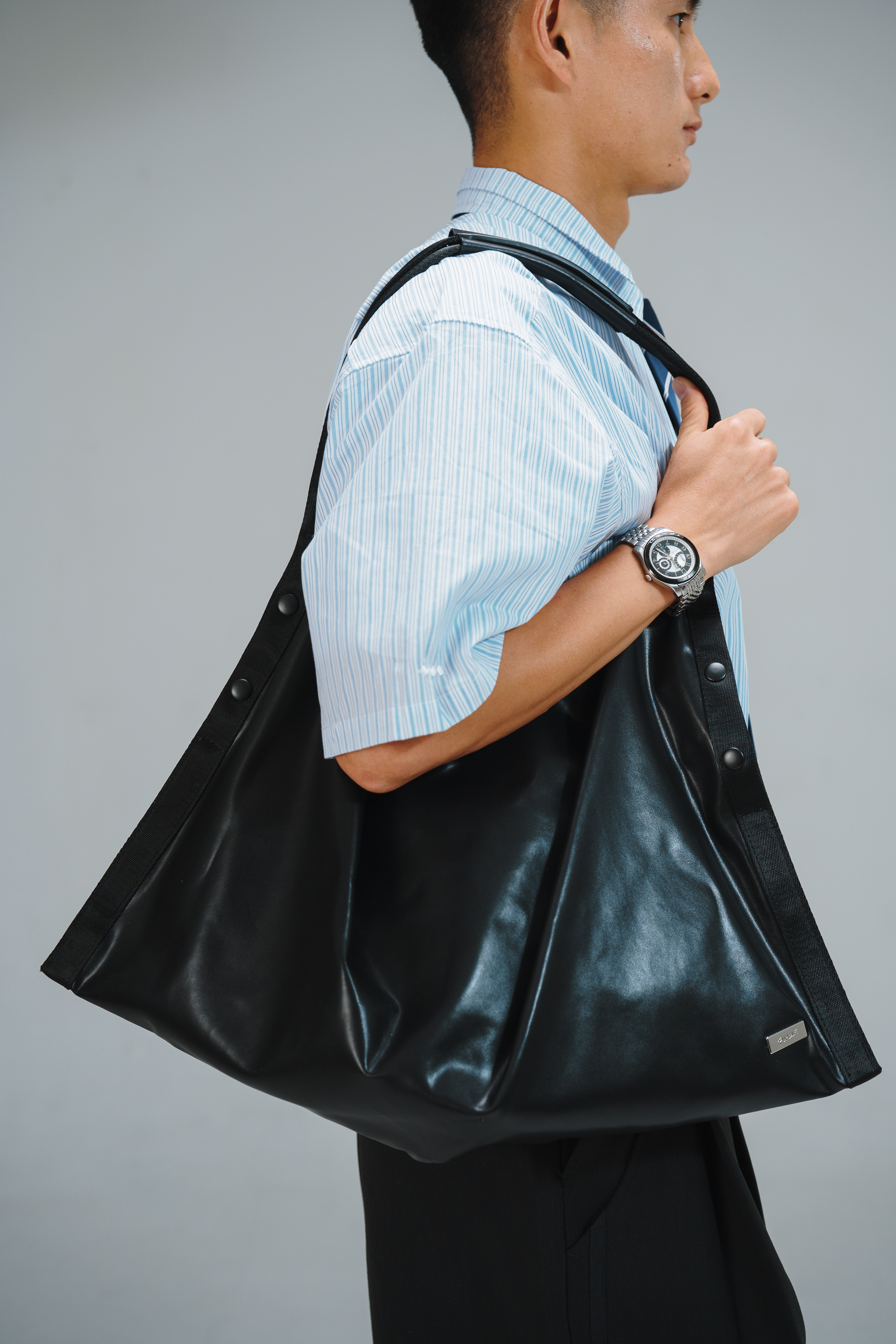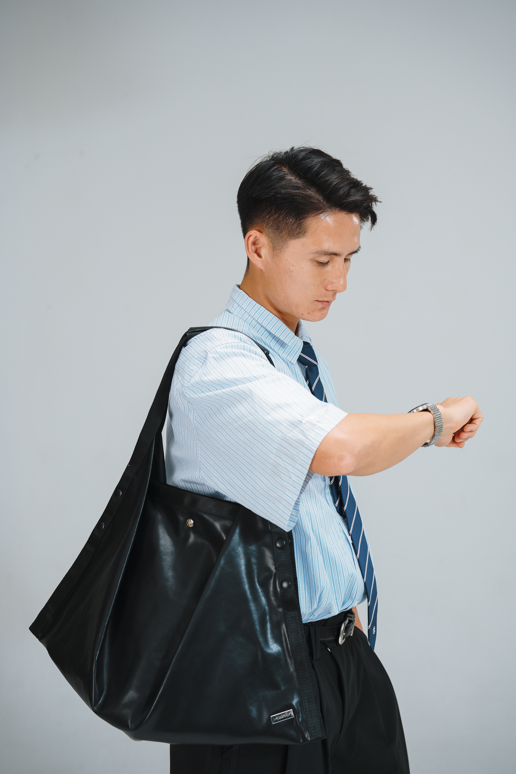 Leather handle Nylon Shoulder Bag|Black|Hong Kong Original Design
