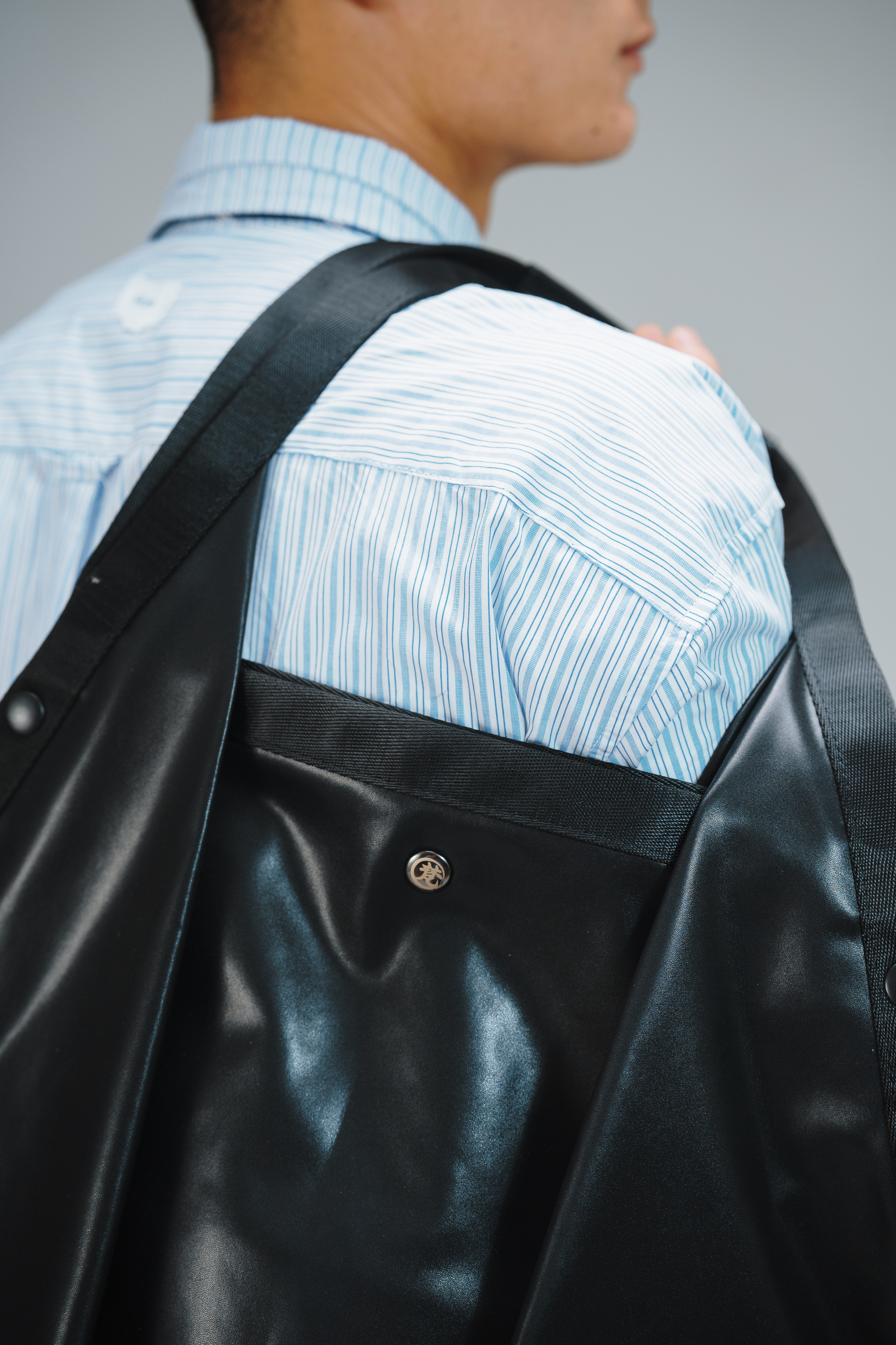 Featuring a deep grey nylon webbing trim, it exudes a composed and refined aesthetic.