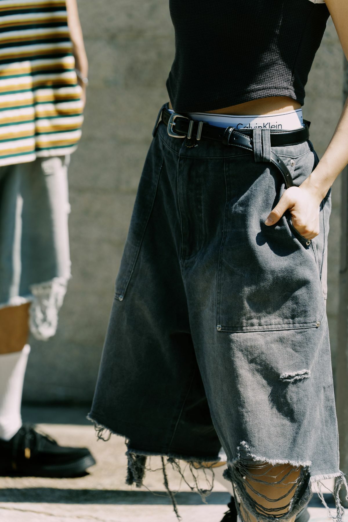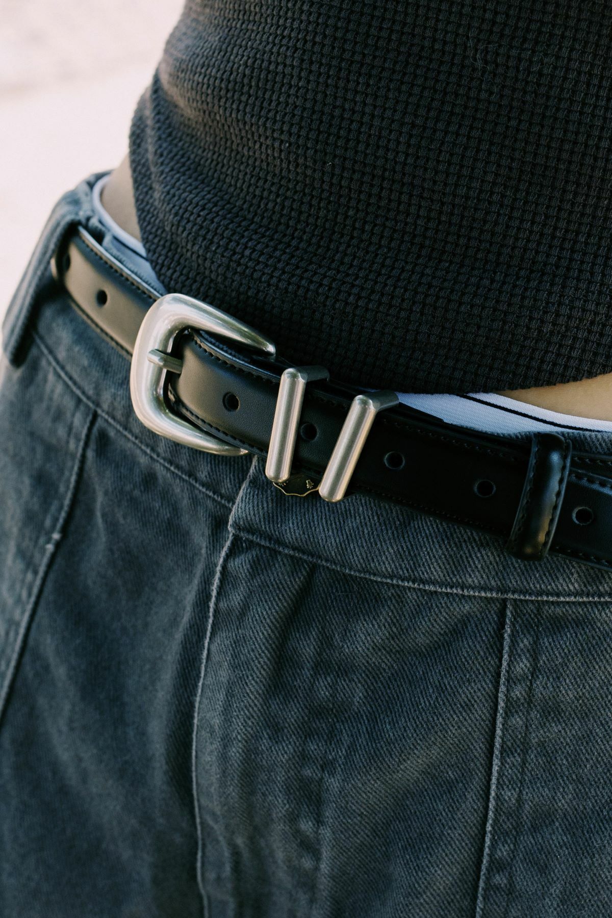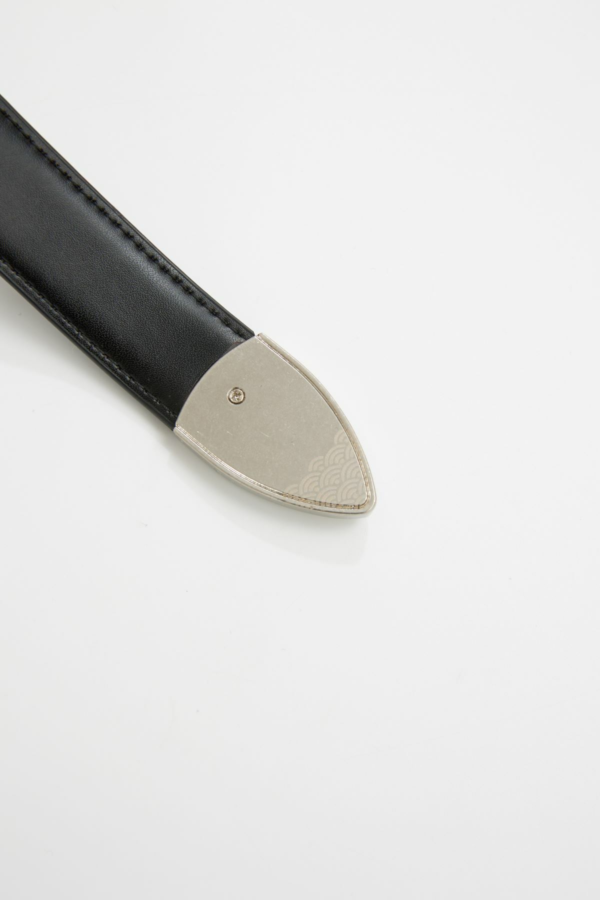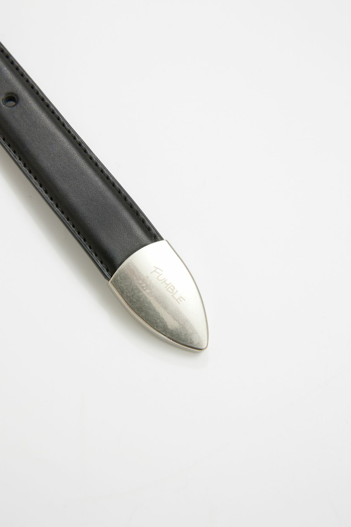 The belt's end is embossed with the FUMBLE logo and detailed with Japanese wave-patterned embossing on the back, adding a touch of Japanese aesthetic to the design. It also includes 13 holes for adjustable sizing.