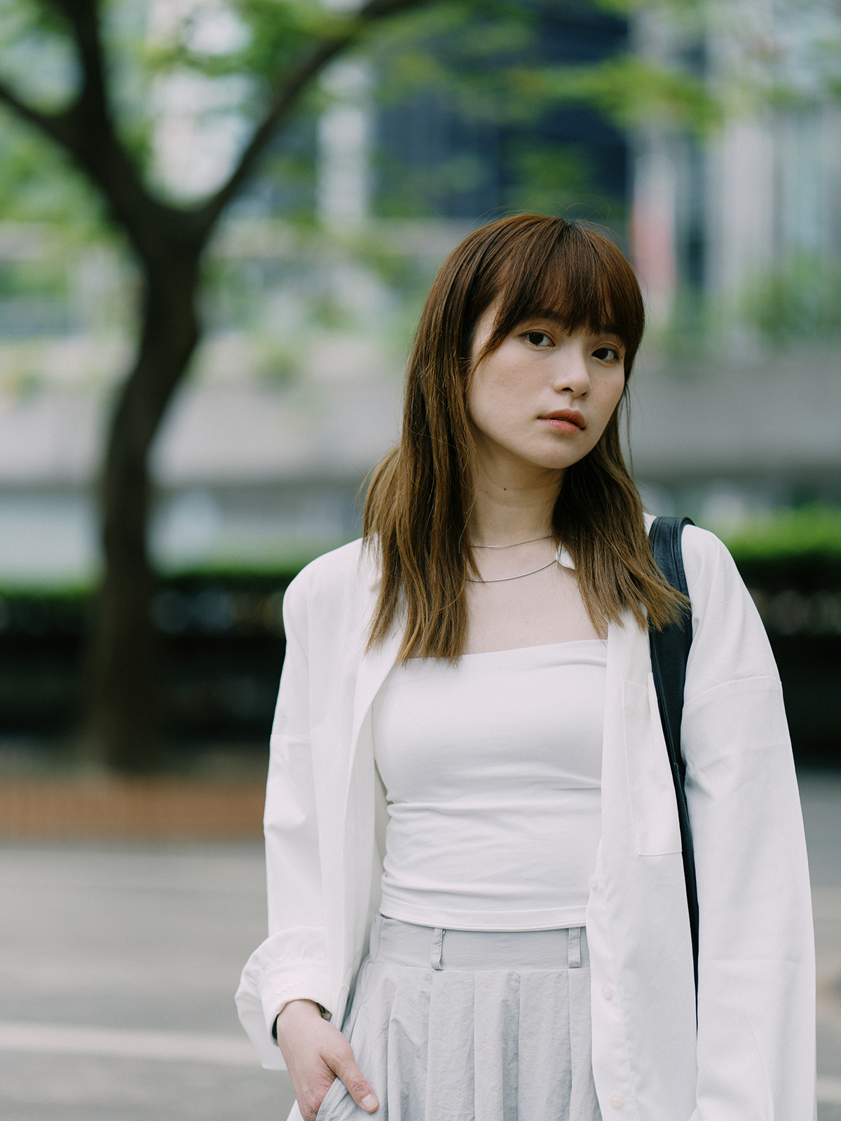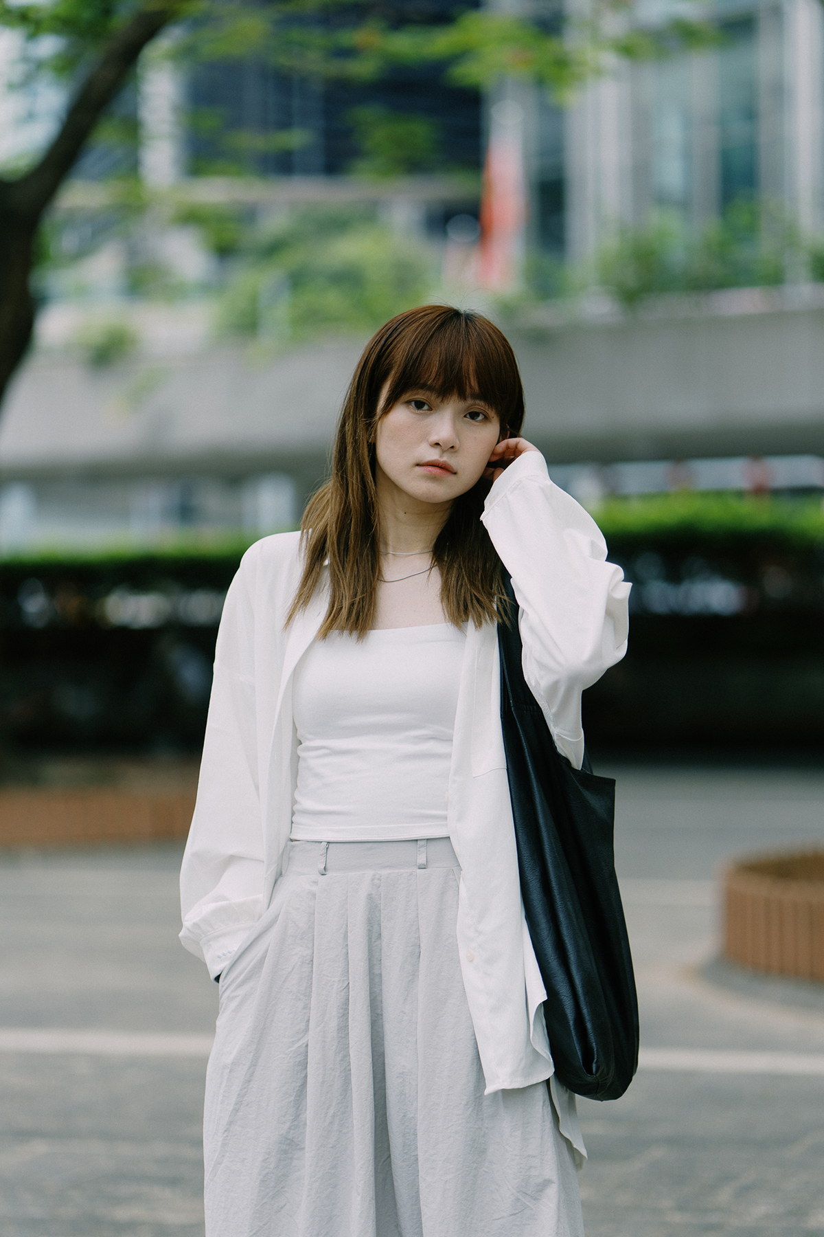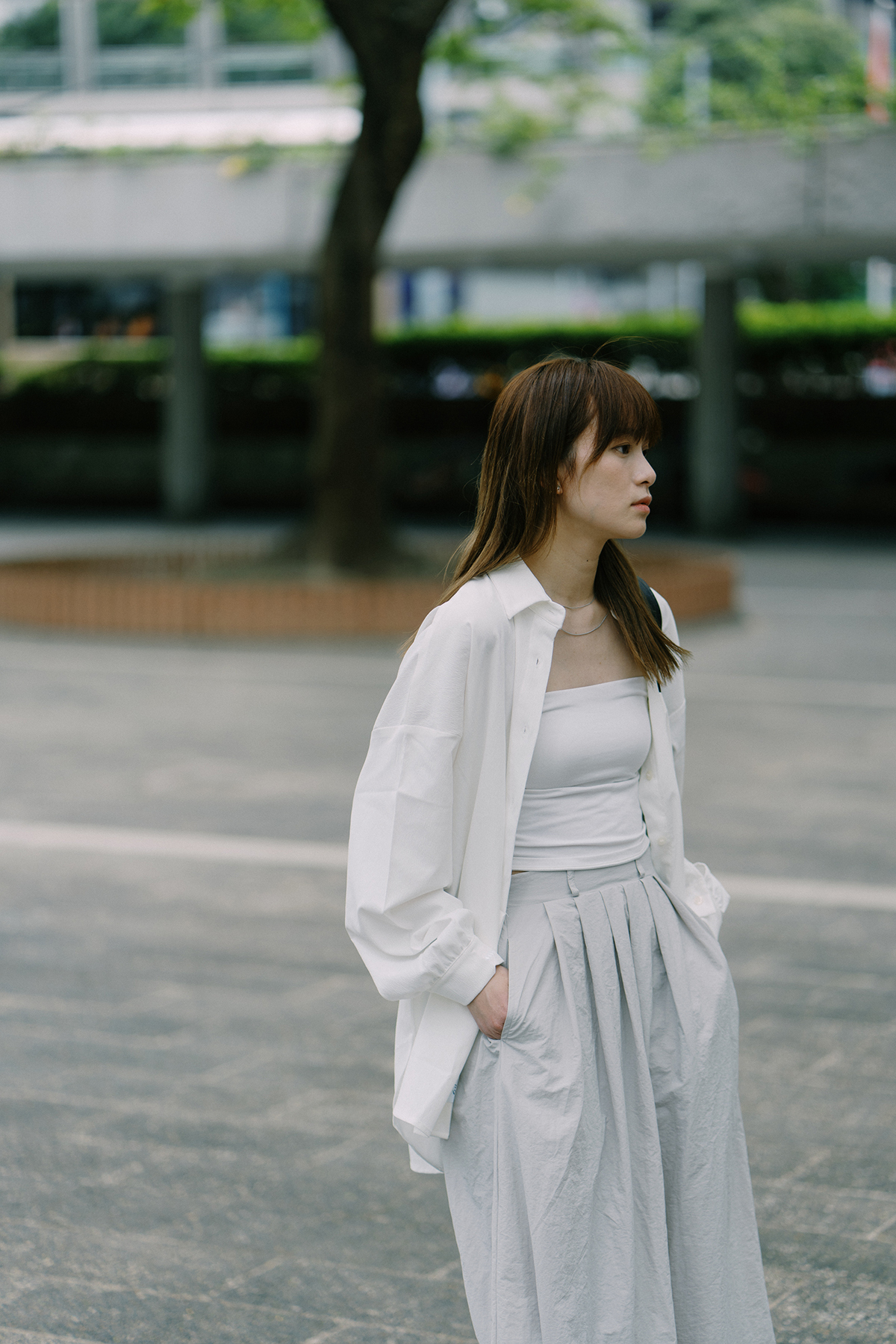Taking the convenience of matching into consideration as the key point, combined with the independent elements of the new generation of women, it can be easily matched during holidays and work. There are 3 products including textured open back shirt, cover cloth suit pants and nylon maxi skirt, which can be mixed and matched with other fumble products to show your personality.