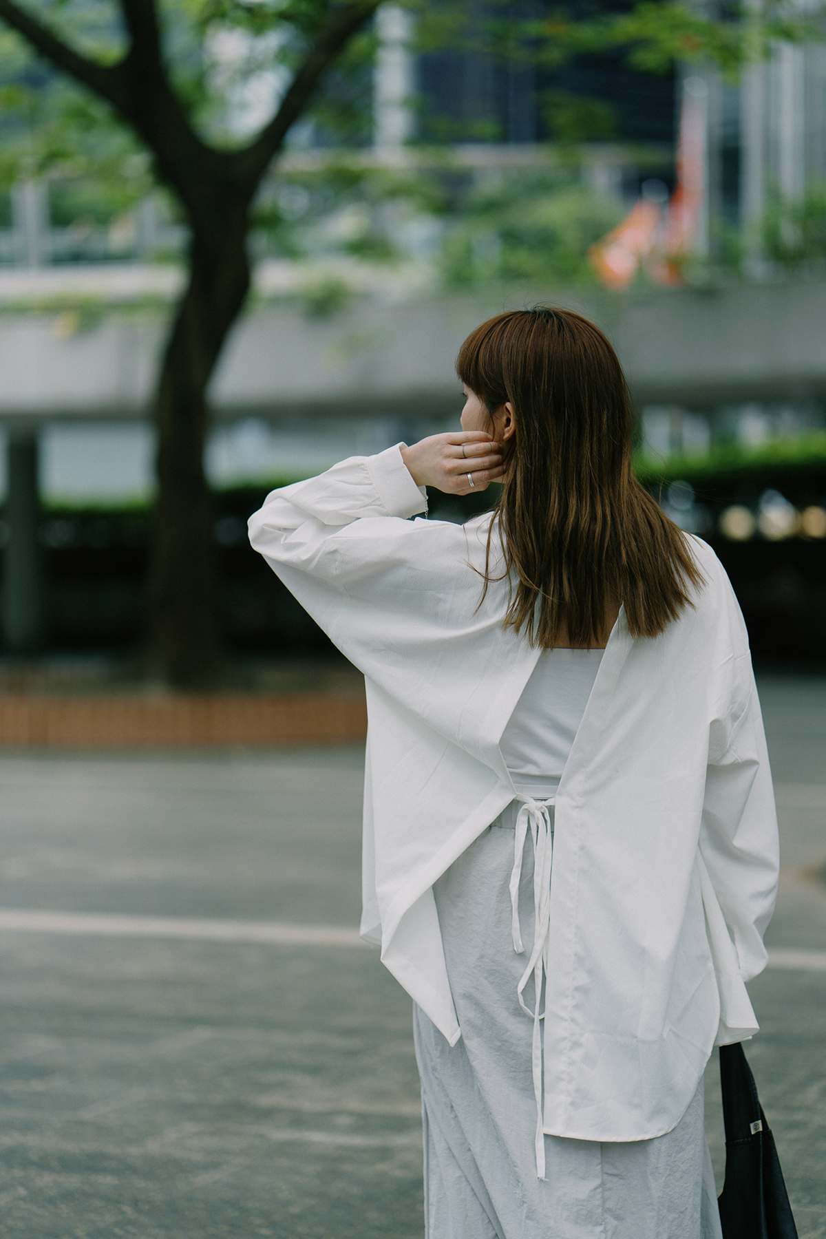 Open Back Lace-Up Shirt|White|Hong Kong Original Design