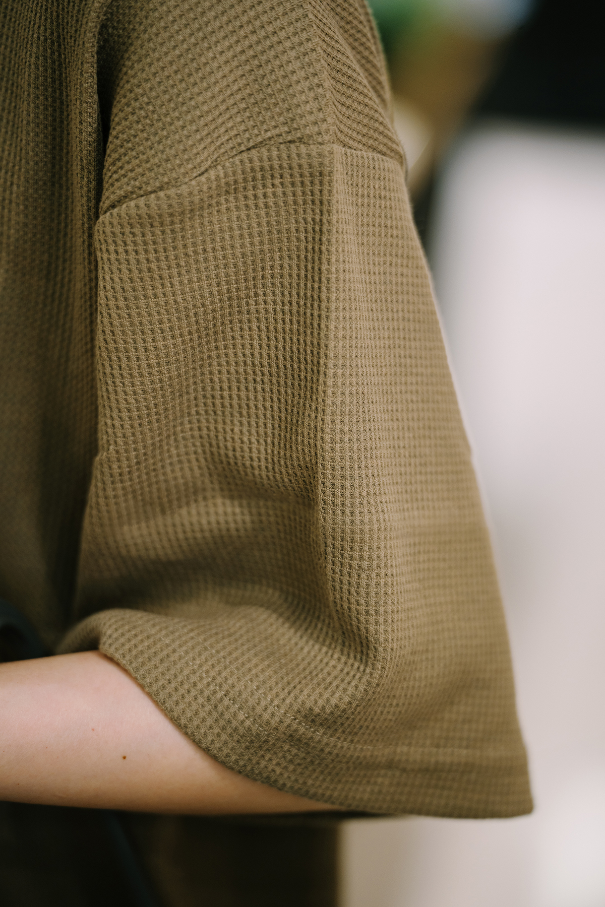 Through a special weaving method, it presents a more three-dimensional and stylish texture, but still maintains the skin-friendly comfort brought by cotton, which is the unique texture of waffle. It is highly hygroscopic and should be protected from mildew caused by high temperature, high humidity and unclean environment.