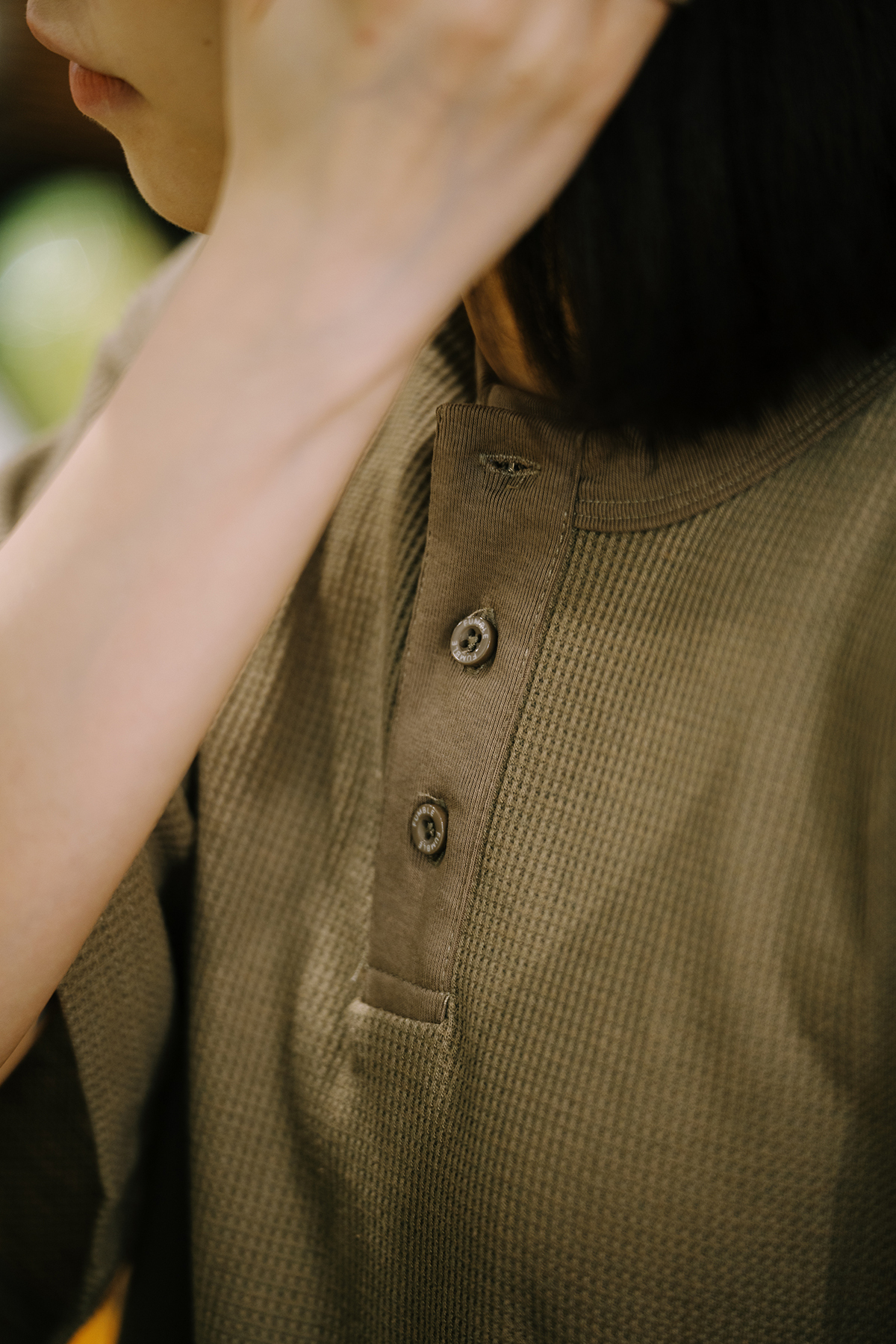 Round Bottom Waffle Henley Shirt|Brown|Hong Kong Original Design
