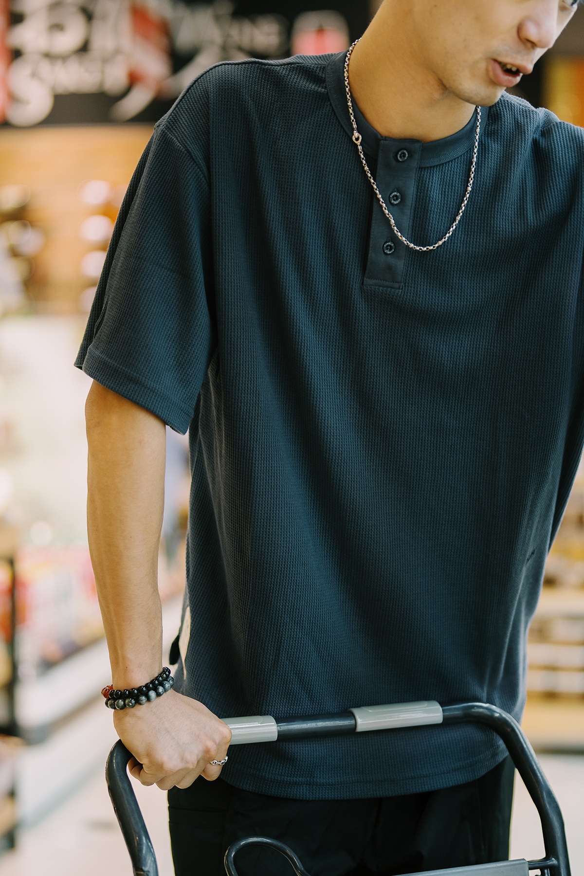 Round Bottom Waffle Henley Shirt|Grey|Hong Kong Original Design