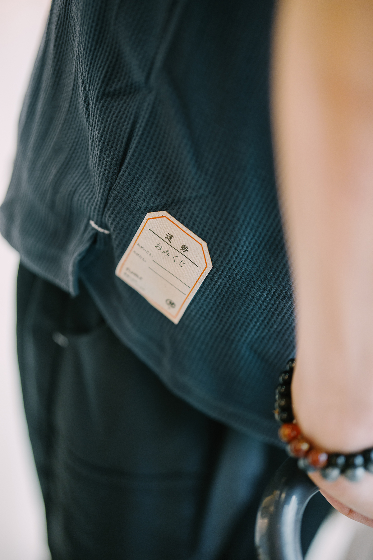 The logo is laser-engraved on the buttons, and there are small slits on the left and right sides for easy swinging, and contrasting dates are added as small embellishments.