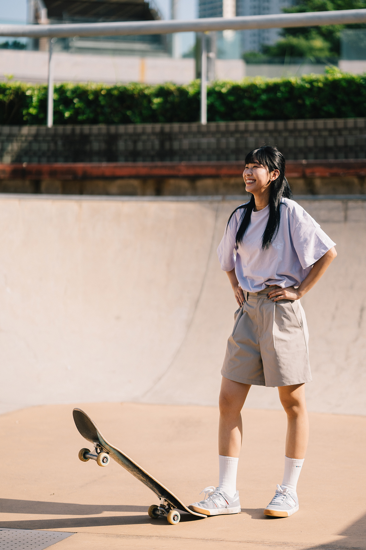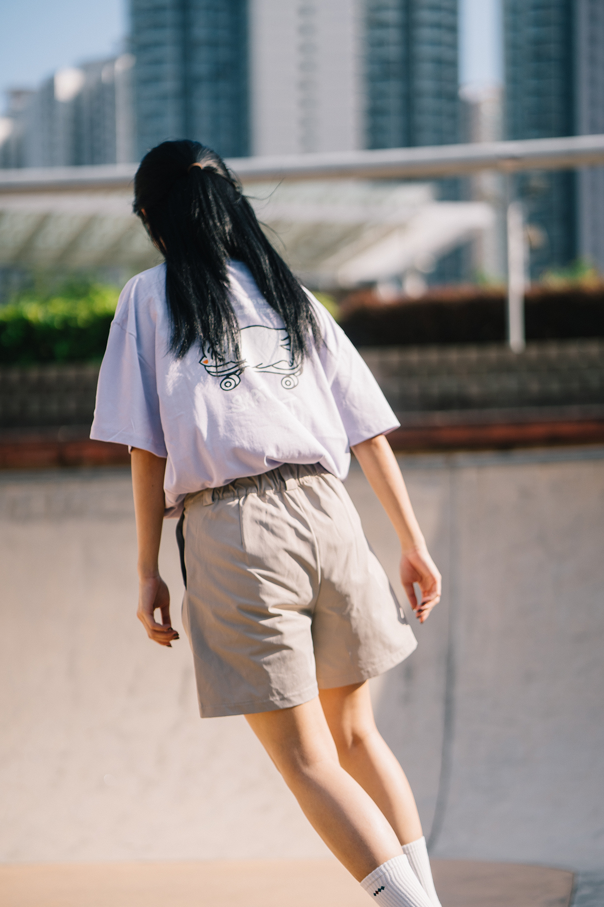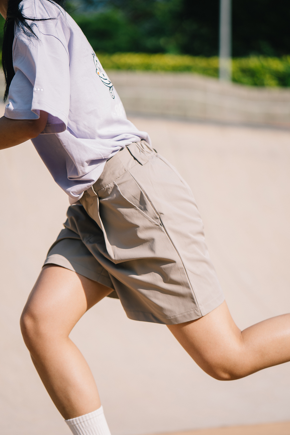 Skatey Cat Straight Work Shorts (for women)|Khaki|Hong Kong Original Design