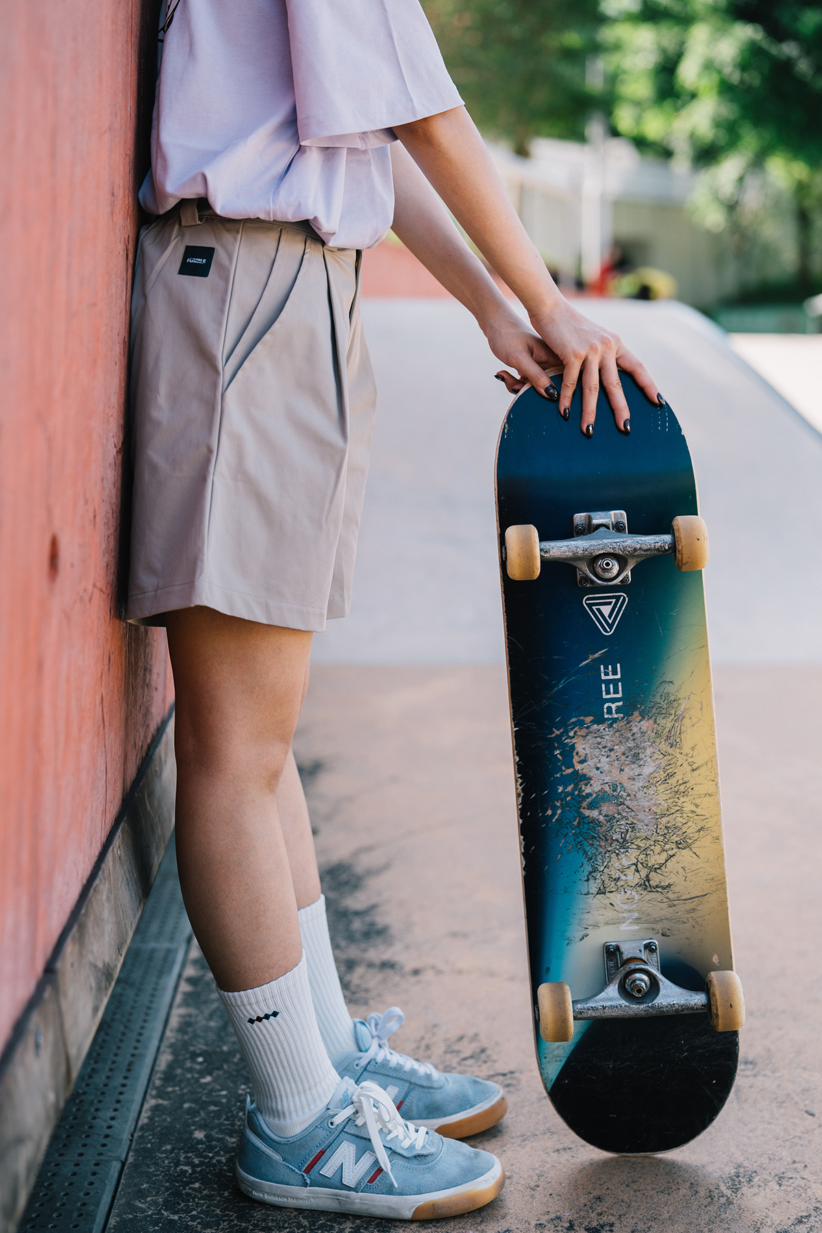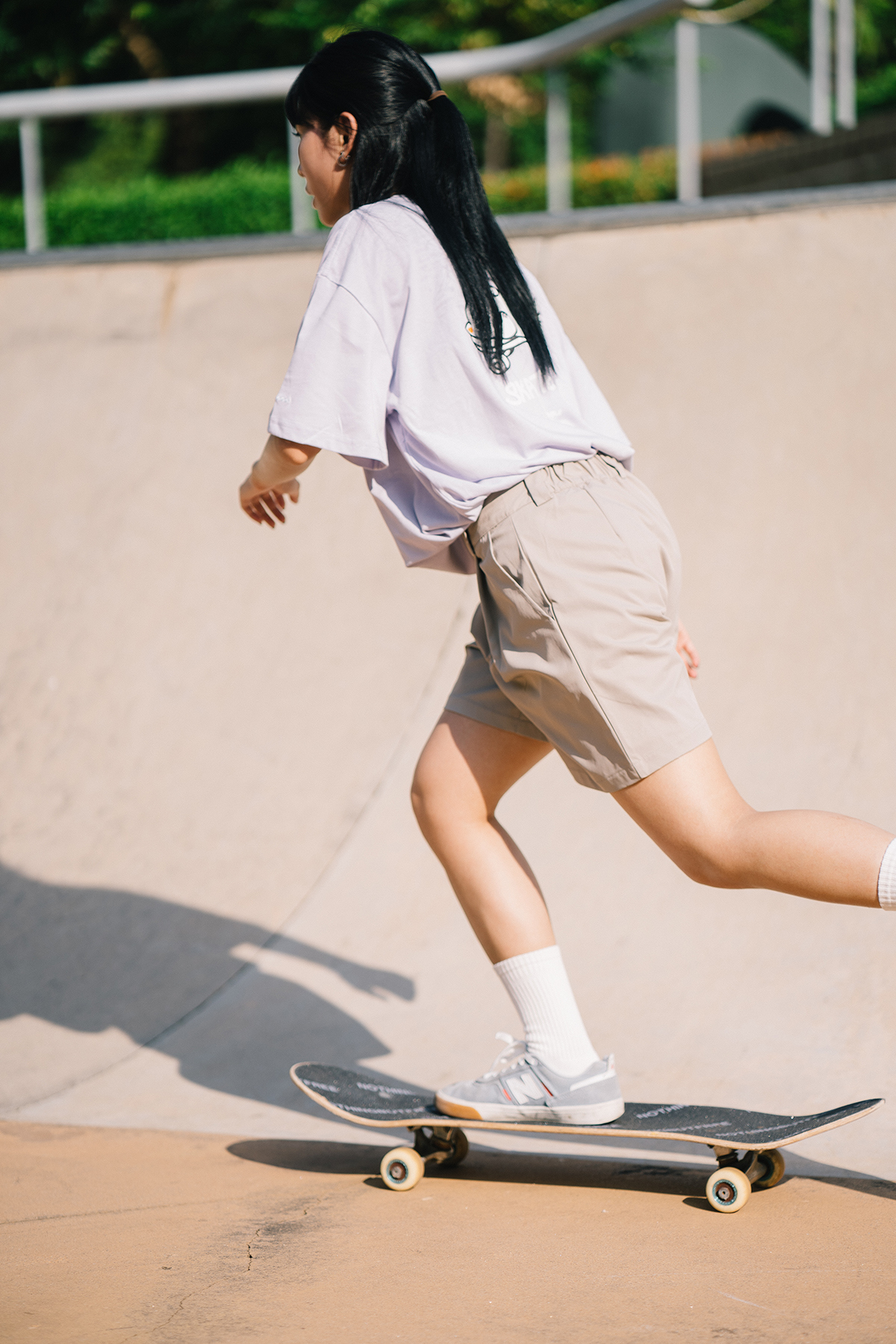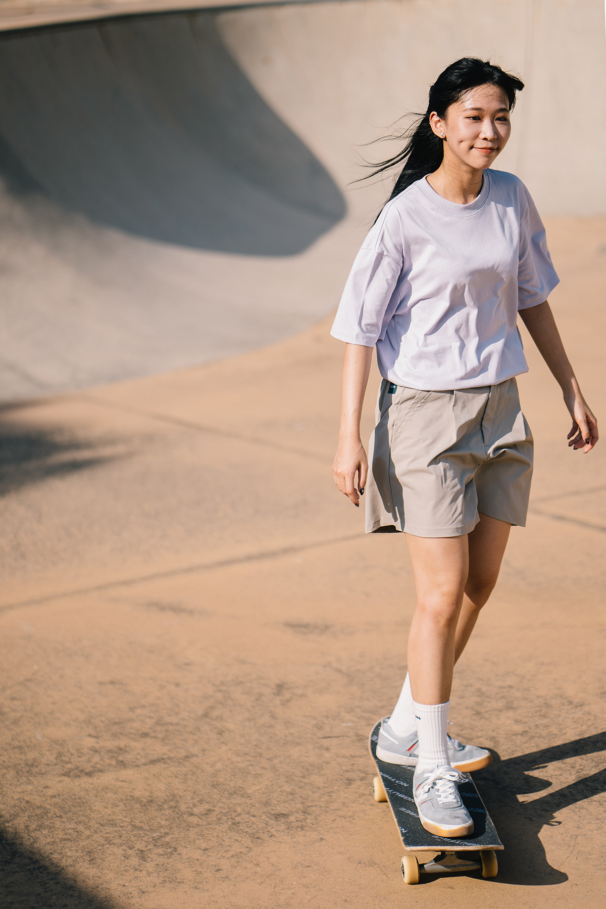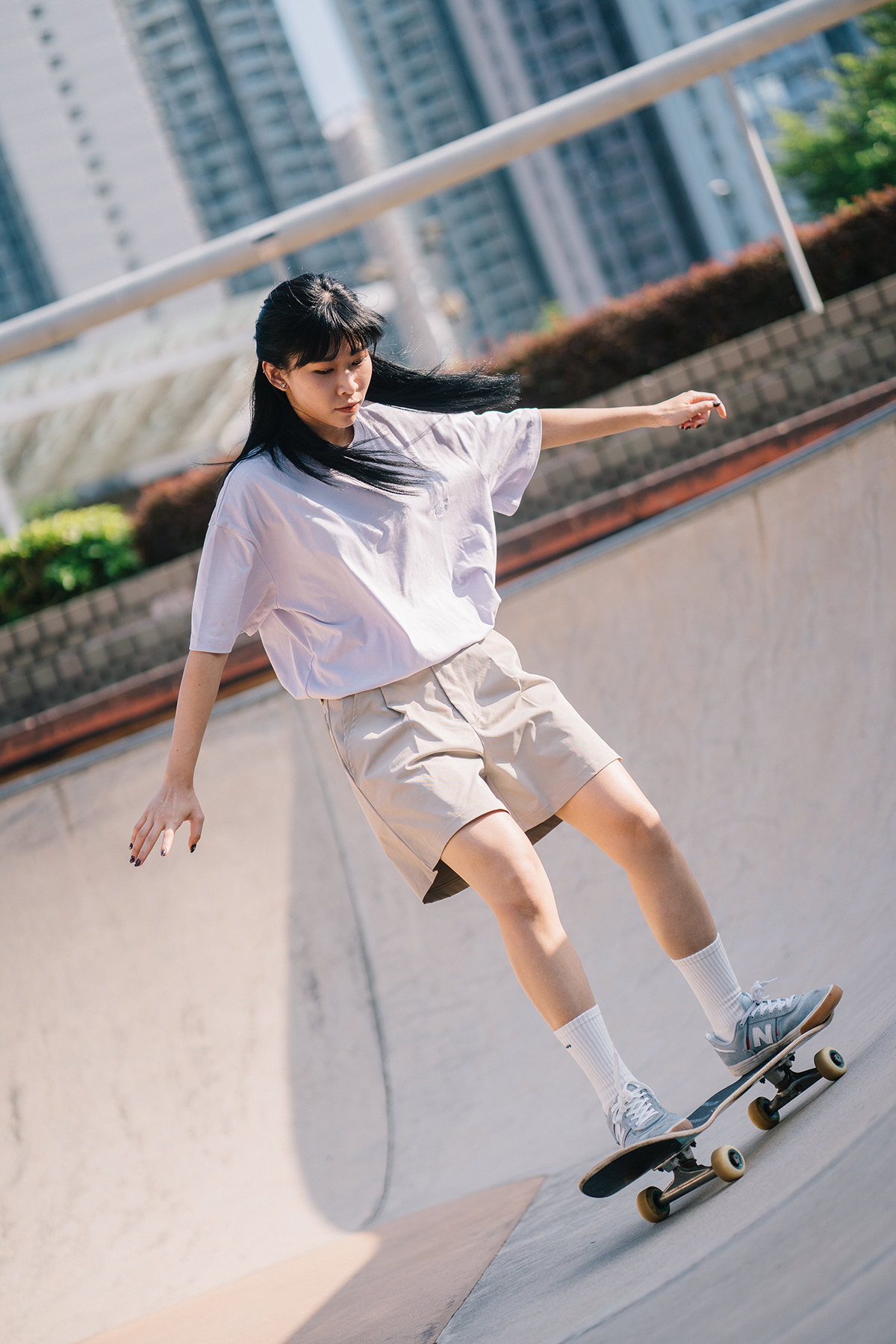 Skatey Cat Straight Work Shorts (for women)|Khaki|Hong Kong Original Design