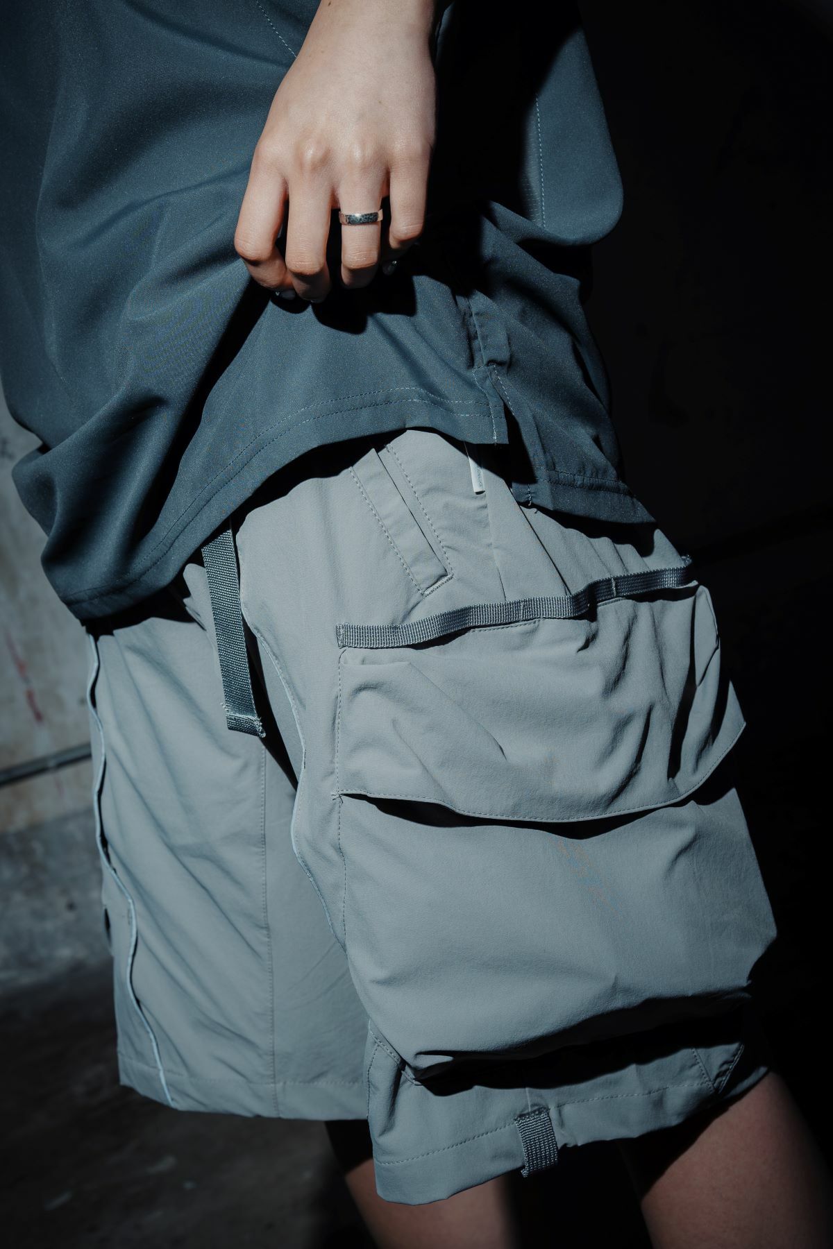 Designed with practicality in mind, these shorts come with seven pockets. Notably, the side pockets are asymmetrical: the left features a large, independent pocket, while the right has dual slanted pockets for ample storage. The micro-balloons design enhances the 3D structure of the shorts, providing a well-rounded silhouette.