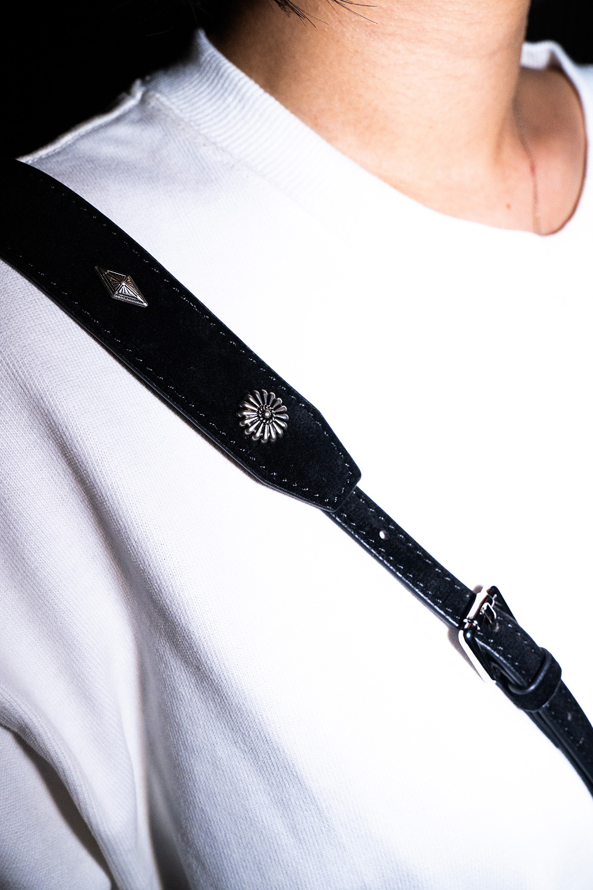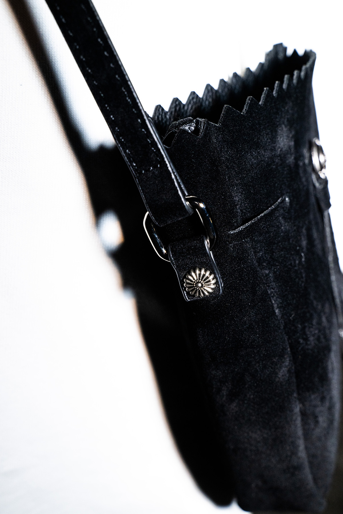 Unique suede texture blended with detailed buckles