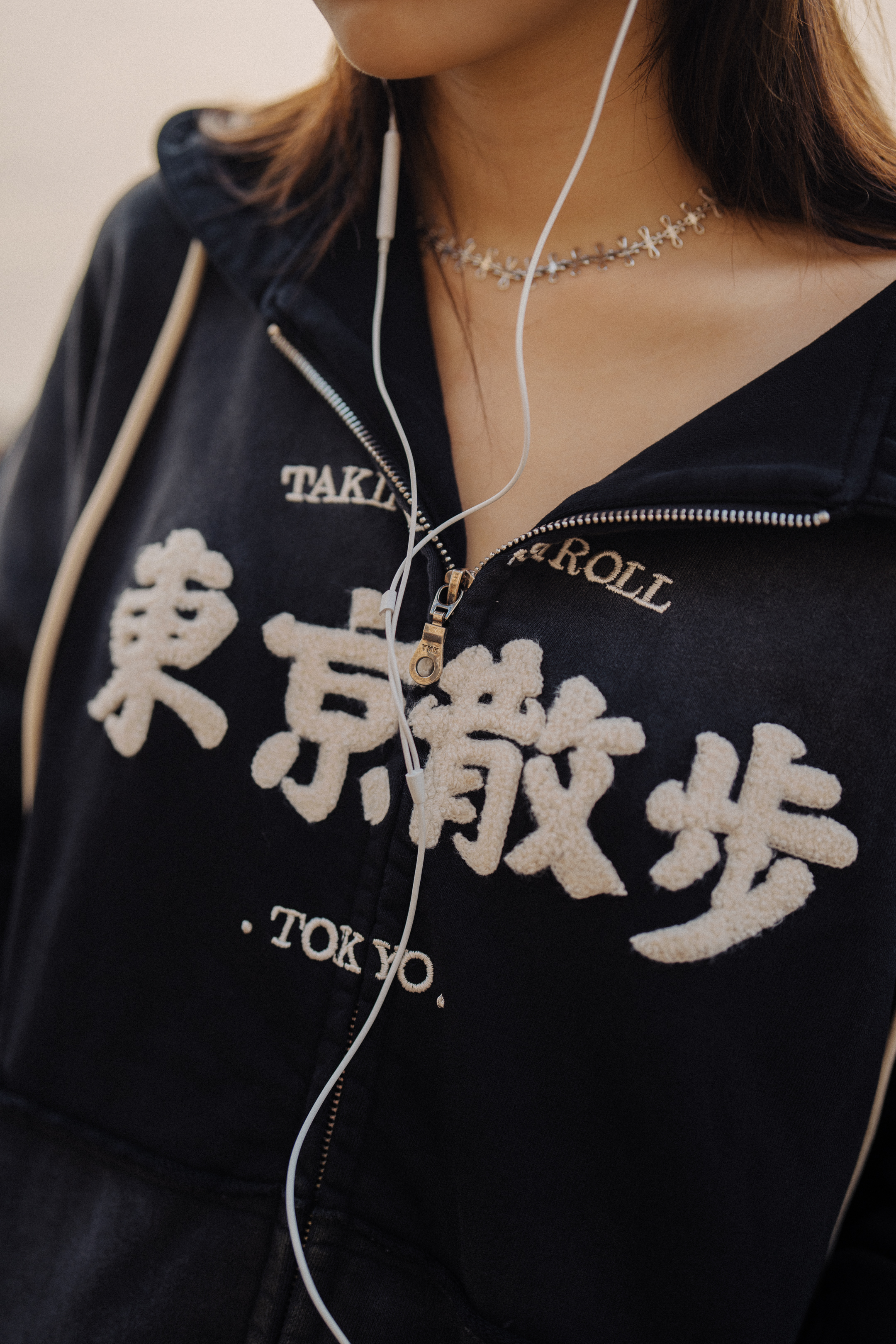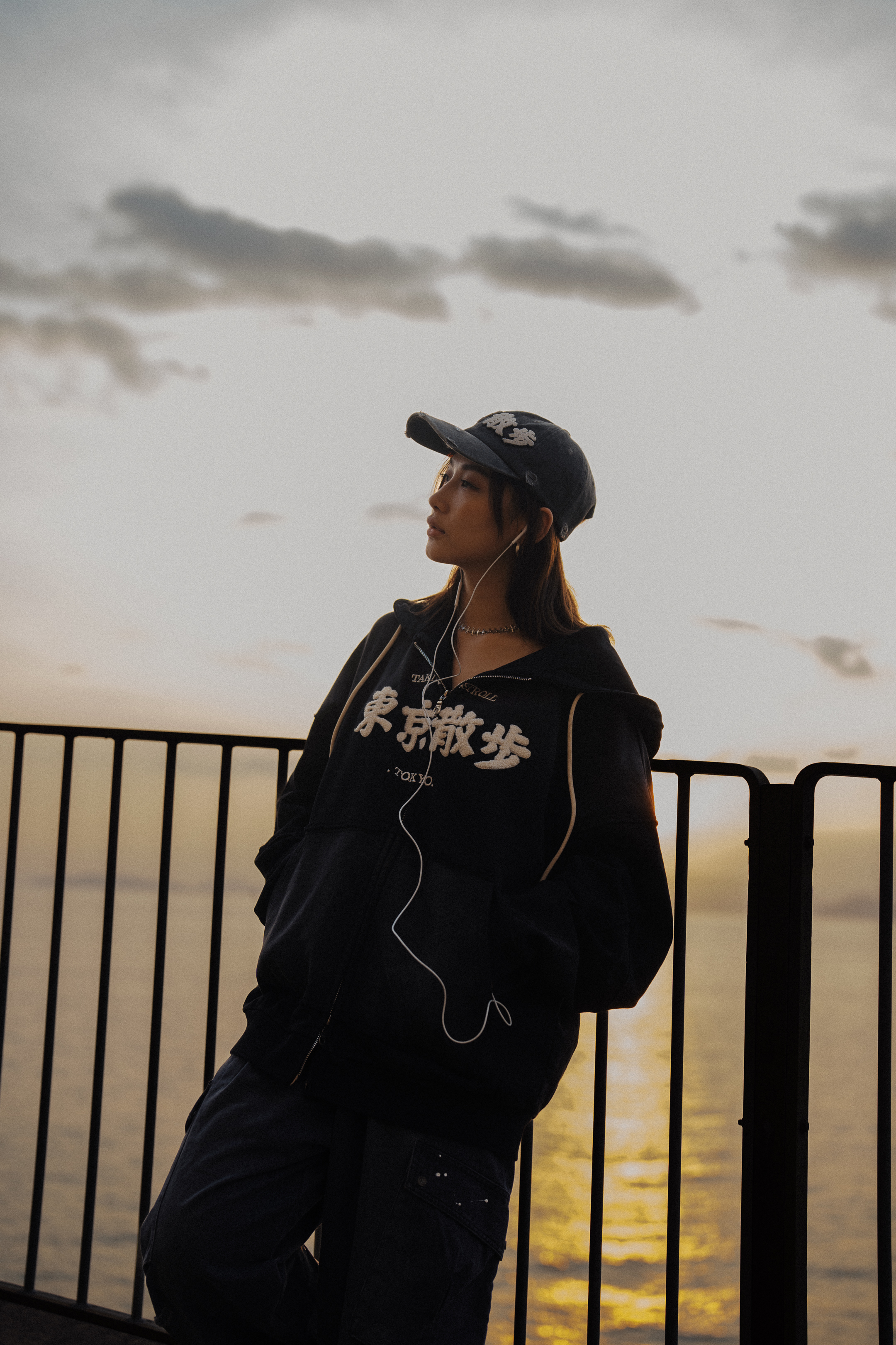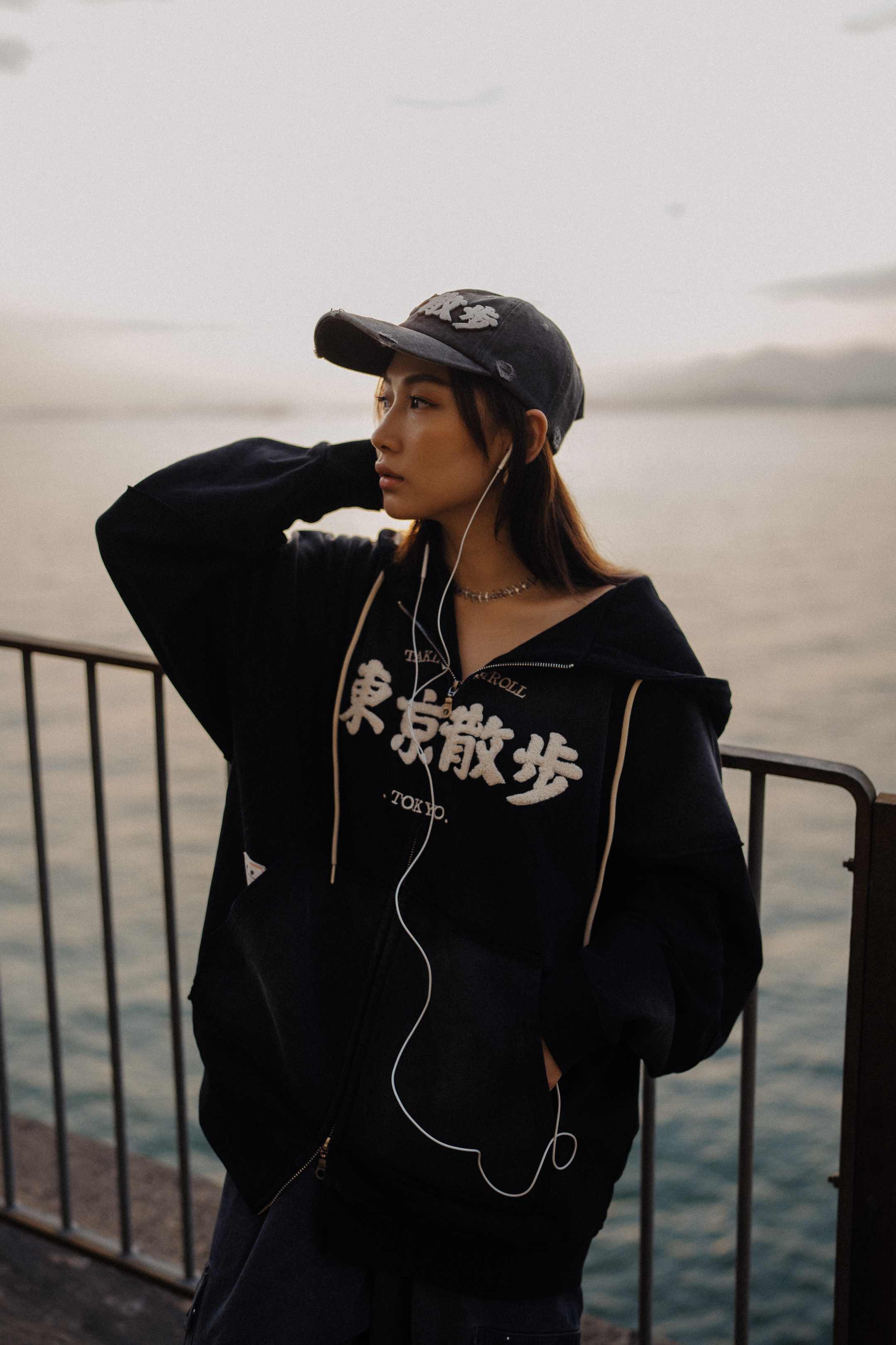 Strolling in Tokyo Washed Hoodies|Black|Hong Kong Original Design