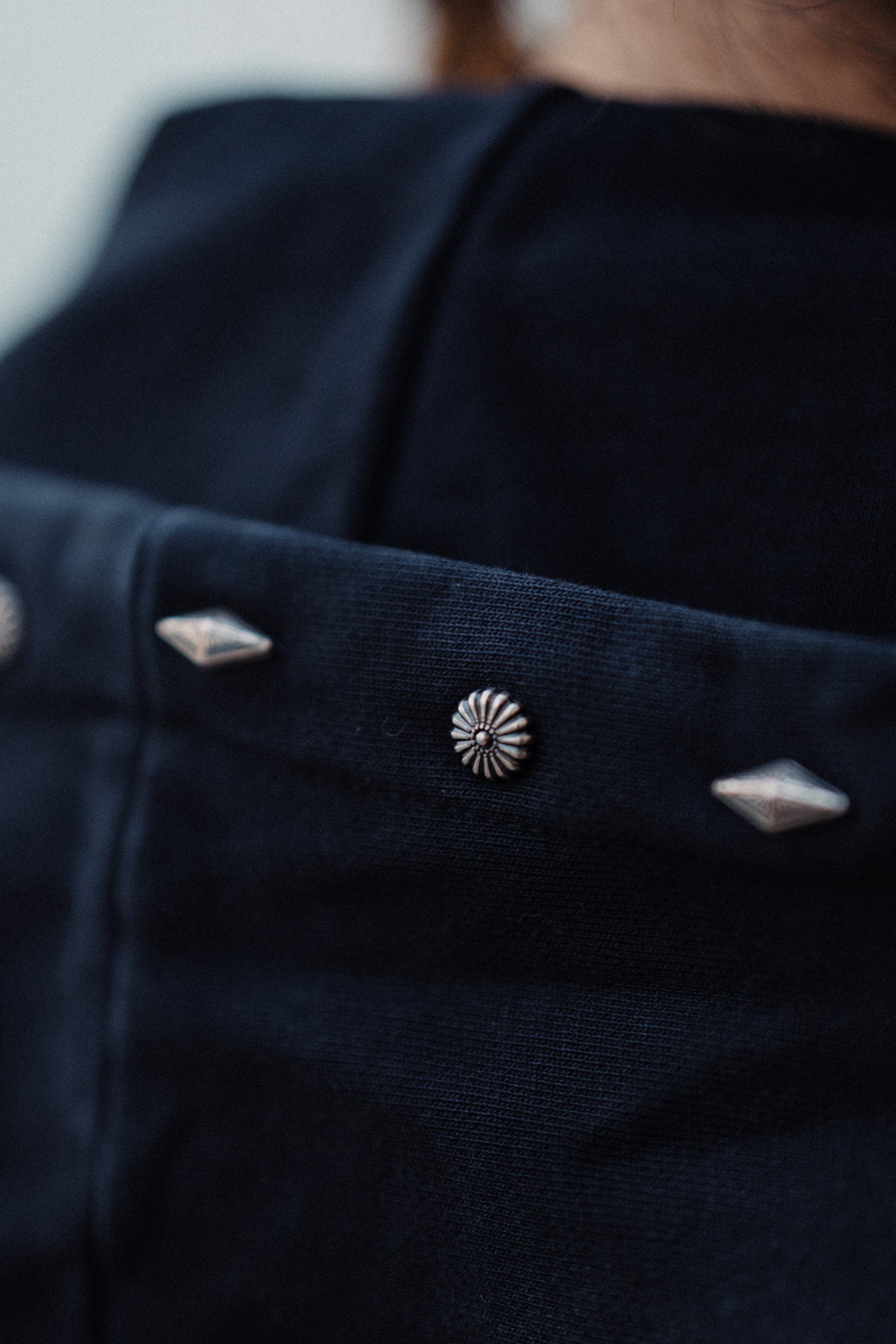 The exquisite Tokyo promenade button design on the hat adds a unique urban style to the overall look. The furry embroidery and embroidery on the chest are the iconic details of the Tokyo Walk brand, and they can express our attention to details through the texture of the product.