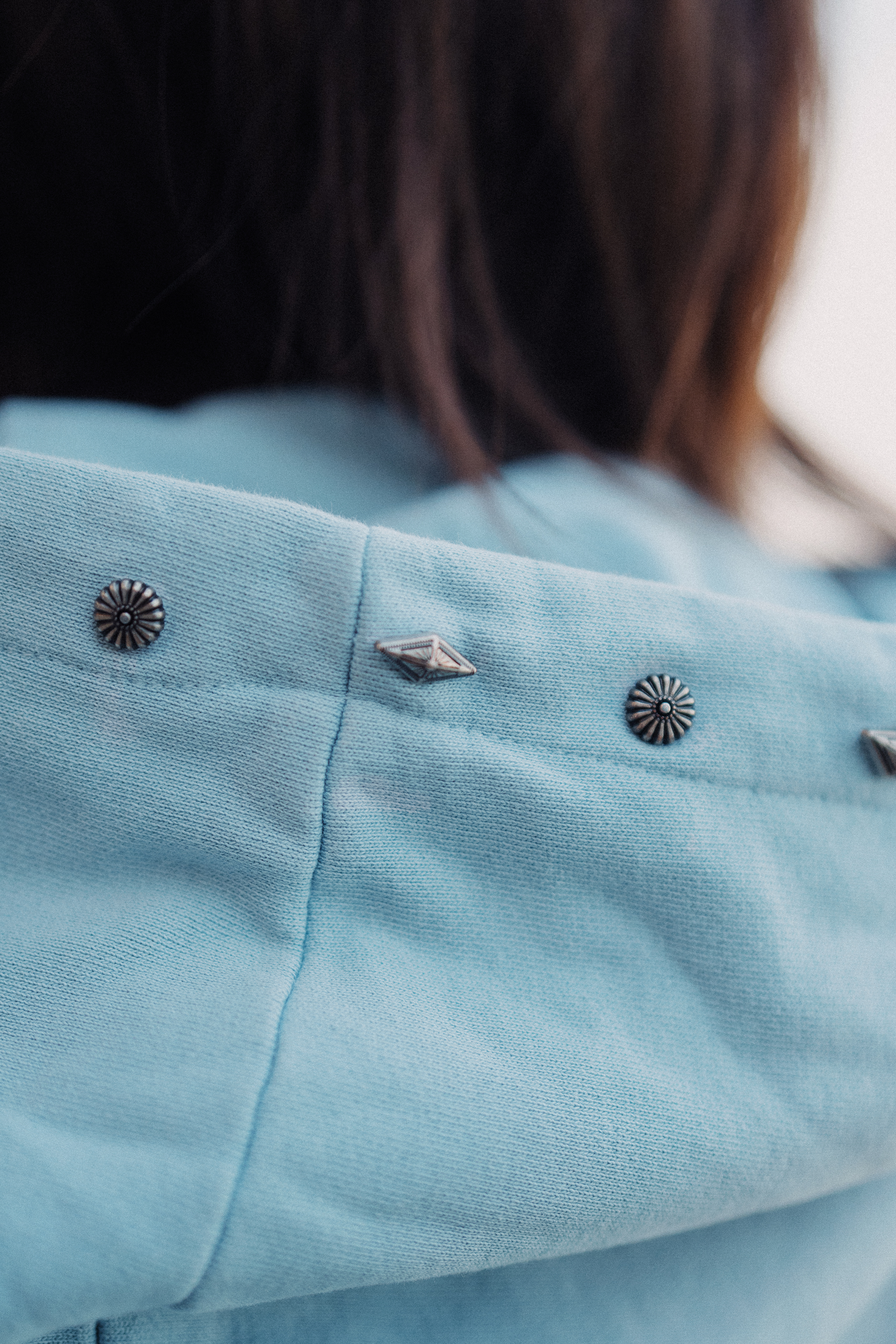 The exquisite Tokyo promenade button design on the hat adds a unique urban style to the overall look. The furry embroidery and embroidery on the chest are the iconic details of the Tokyo Walk brand, and they can express our attention to details through the texture of the product.