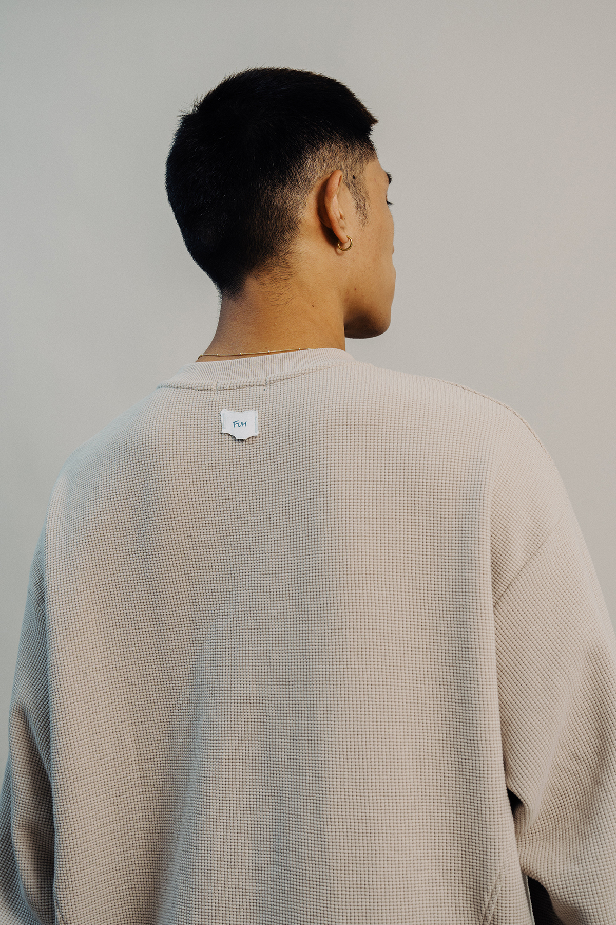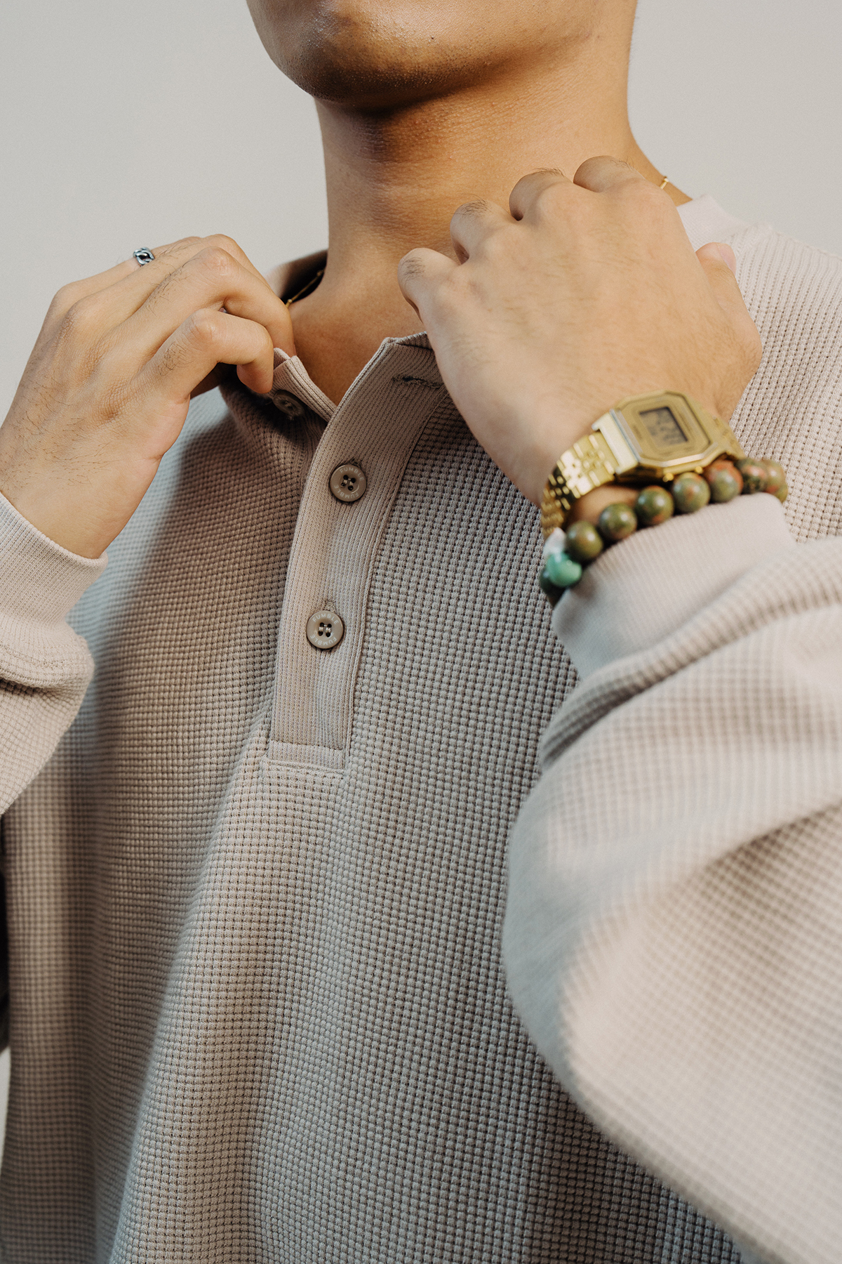 Waffle Long Sleeve Henley Tee|Khaki|Hong Kong Original Design