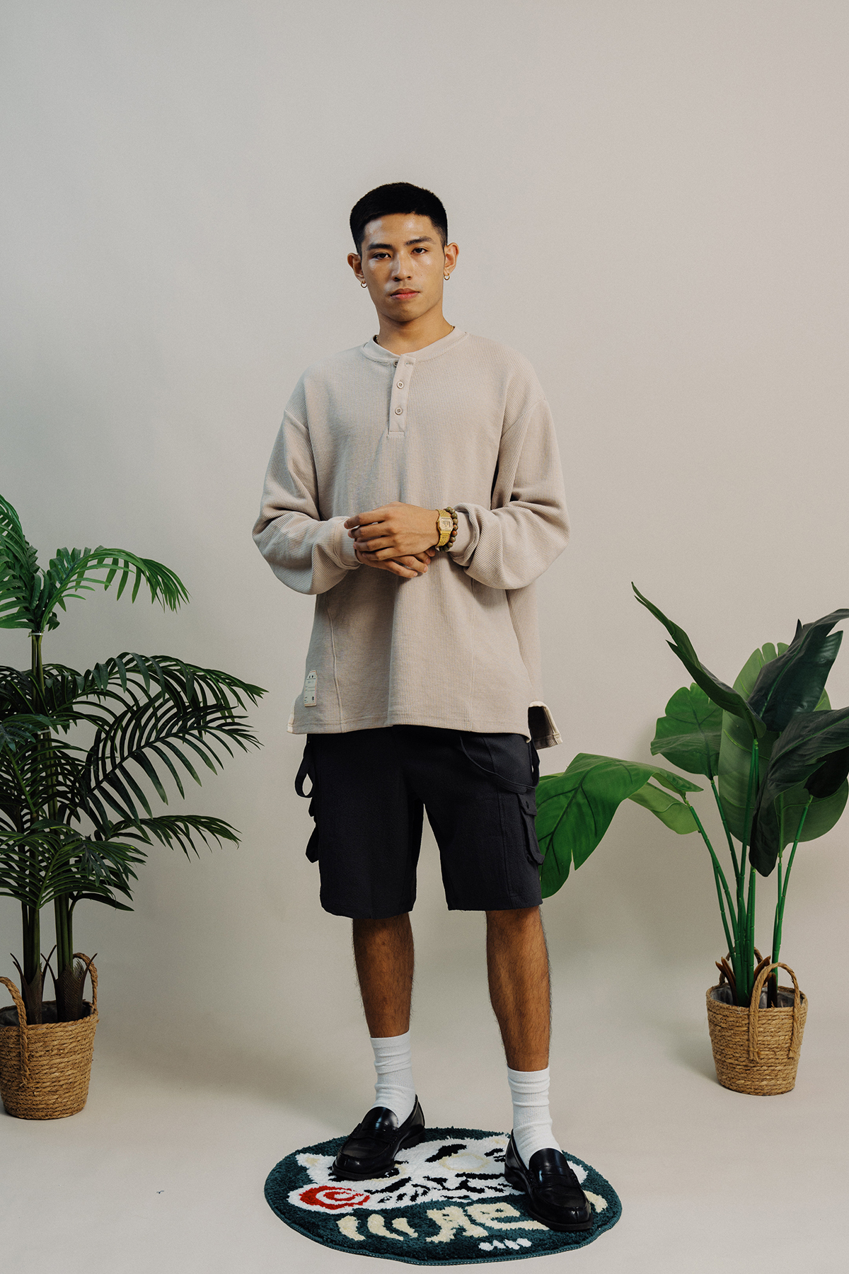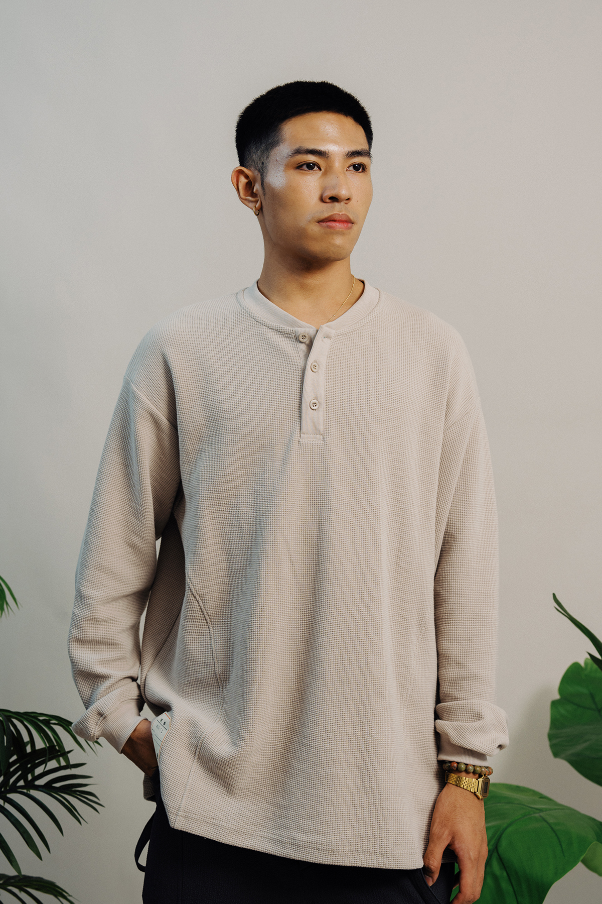 Discover our tailored waffle henley collar long-sleeve tees, designed with originality in mind and an attitude of continuous improvement. The newly adjusted long-sleeved daily wear style emphasizes the loose and comfortable feeling of CITYBOY. It is paired with a unique Henry collar design.