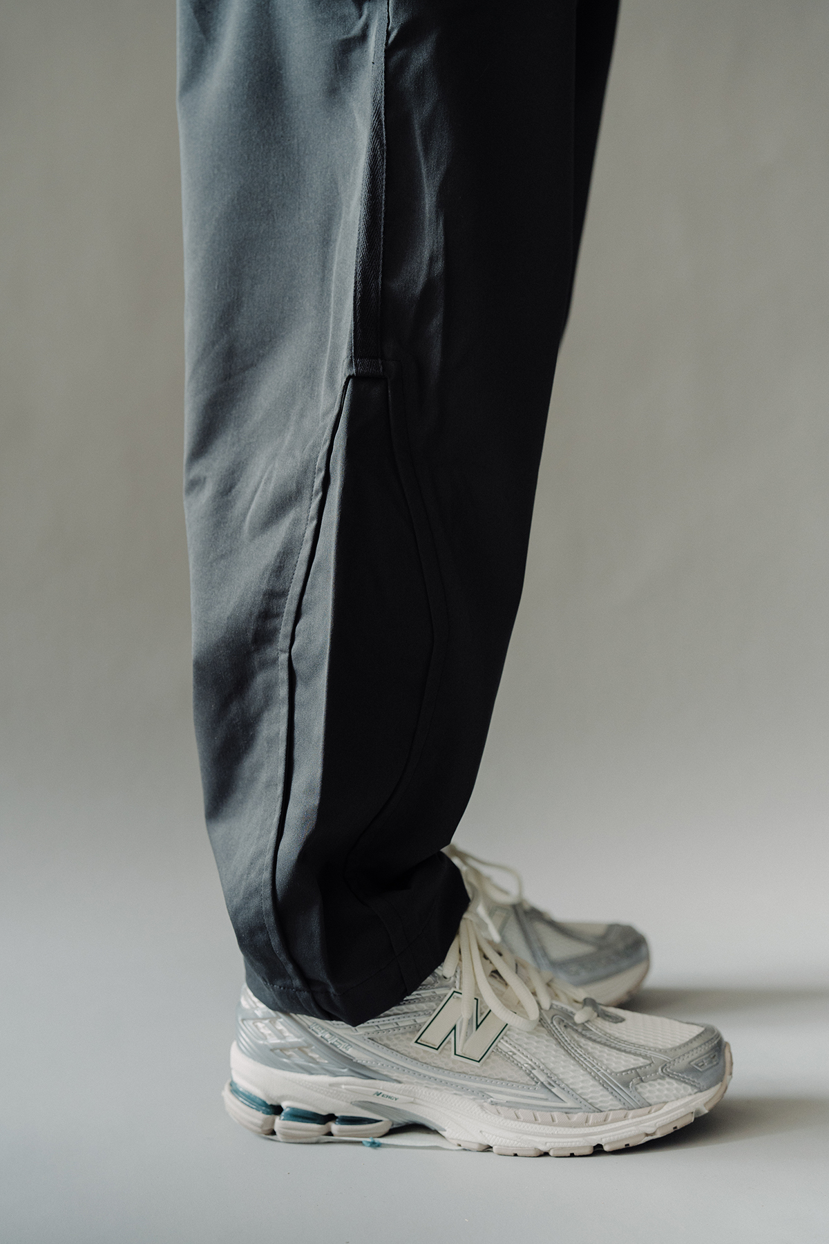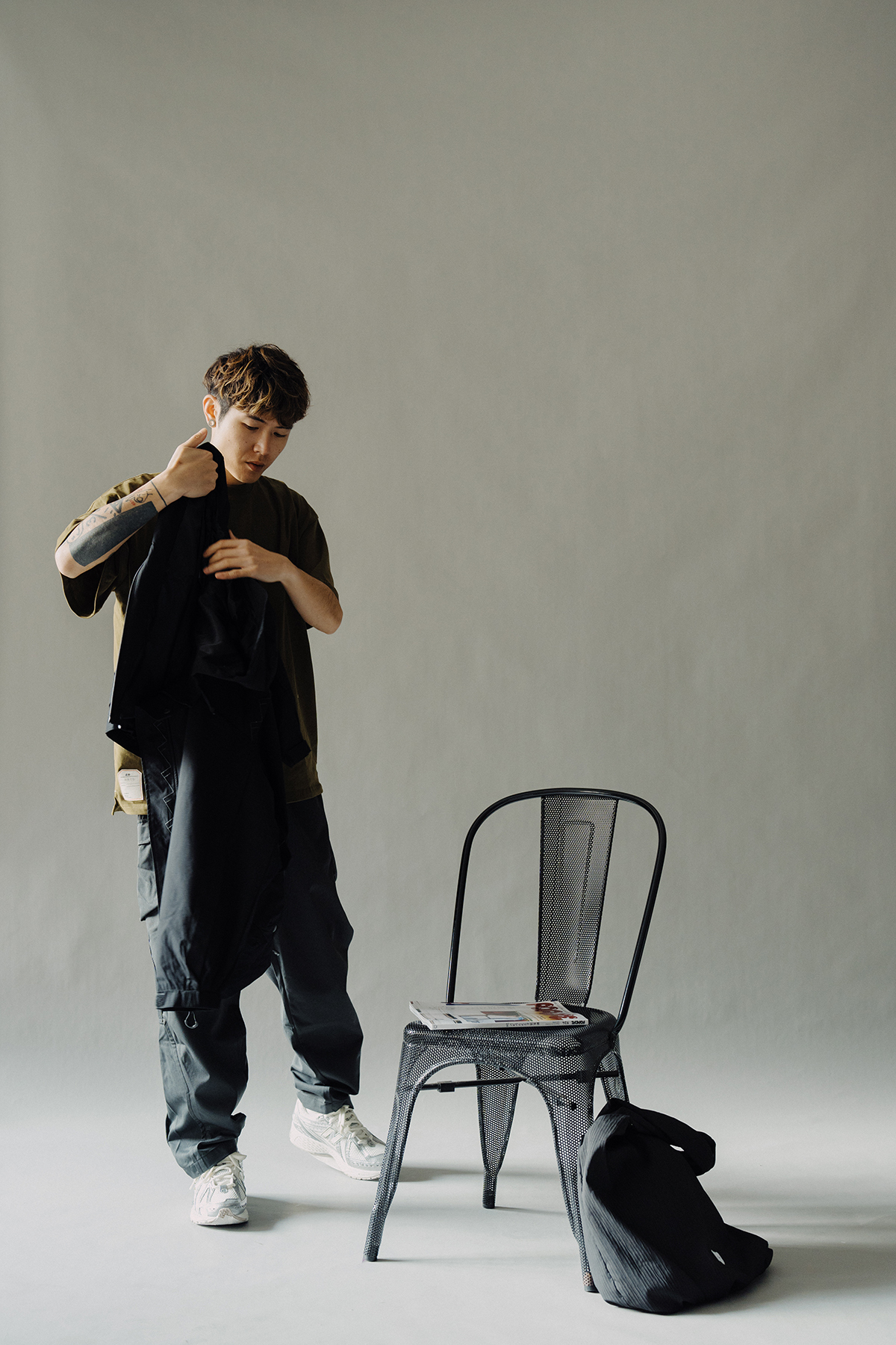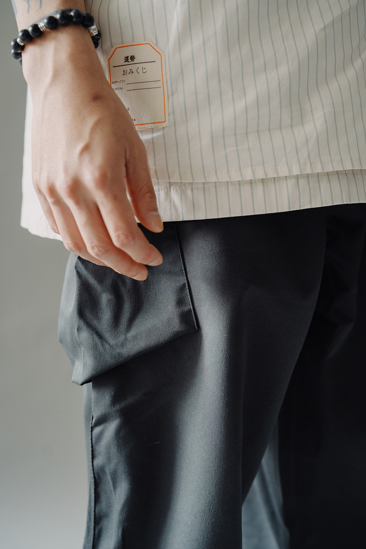 The trousers are designed with slightly wider thighs and trimmed legs, combined with webbing, unique tailoring lines and high-storage semi-stereo bags.